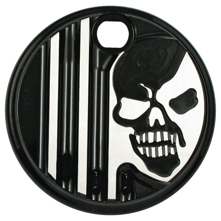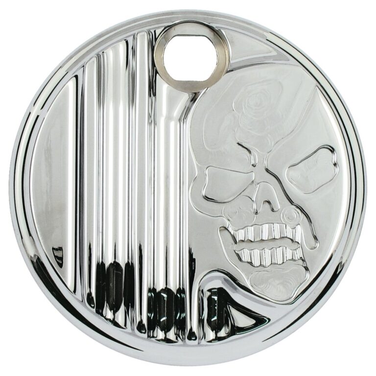 Covingtons Covingtons, aluminum fuel tank door. Chrome. Skull. DEC
