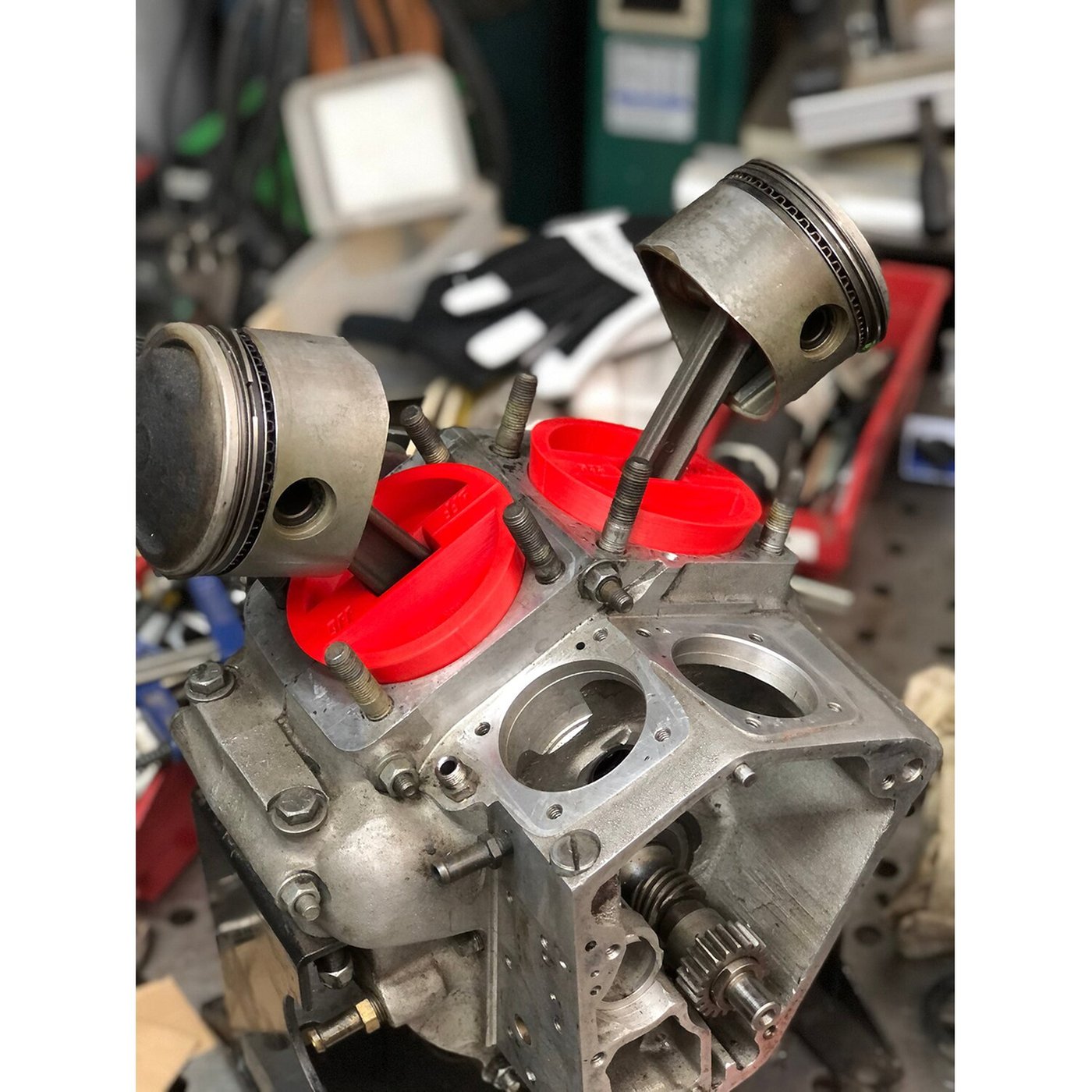 Plug ‘m! The only right way to cover up case bore openings. Foreign material that gets into the bottom end can cause major damage, using a rag or shop towel can inadvertently introduce these contaminates. This magnetic case bore plug set fits the spigot perfectly, holds the rods and is sold in a 4-pack set for front & rear cylinder. – Range: 3.625″ to 3.950″ crankcase bore.