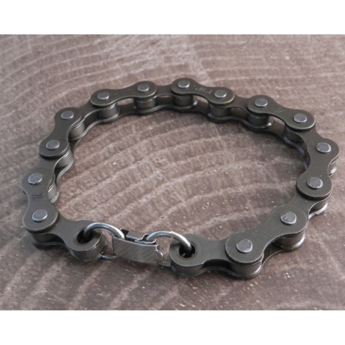 This classic bike chain bracelet of Amigaz with camo brown finnish is a real metal bike chain- made from real bike chain filled with attitude , this is a solid sturdy with a fold over clasp.