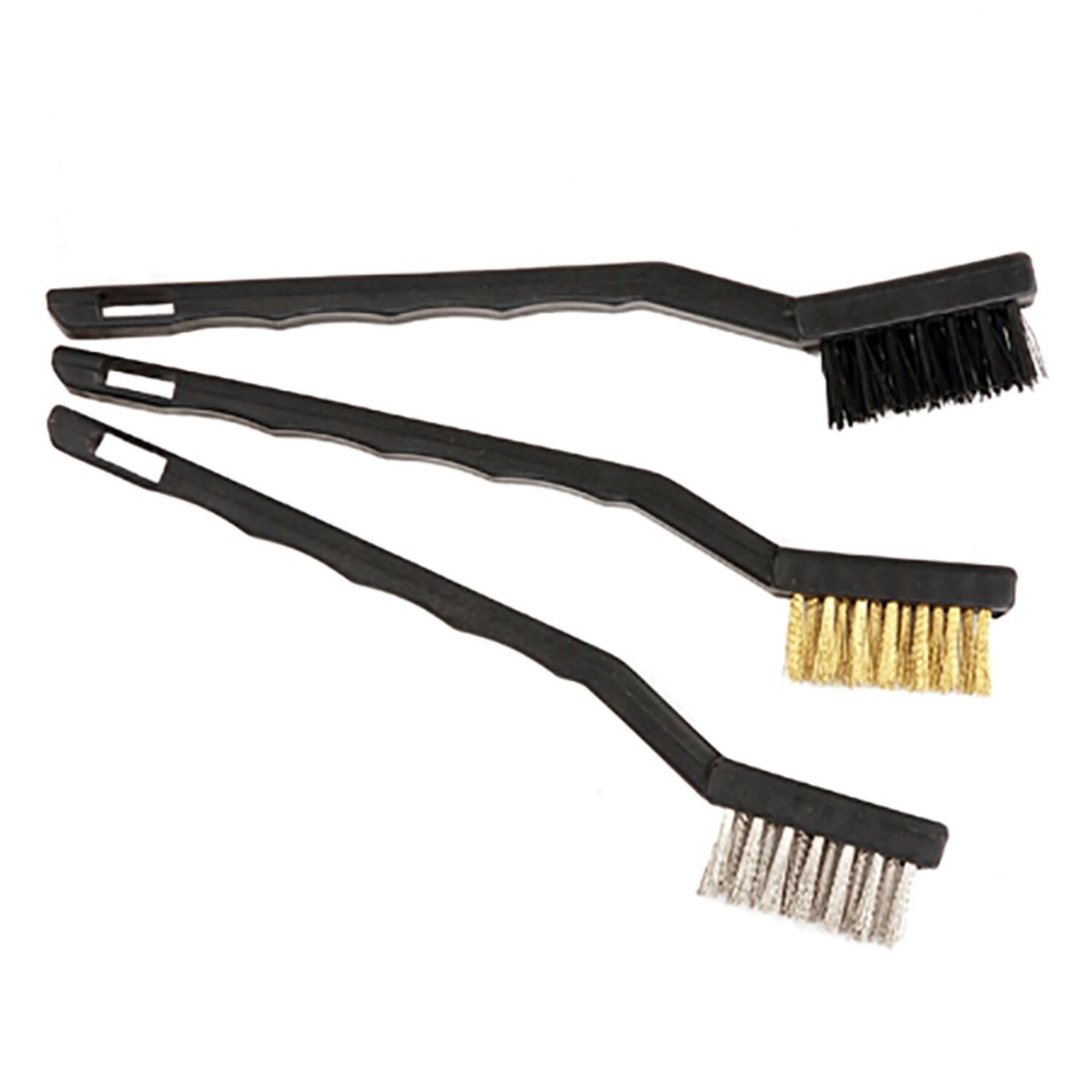 Set of three brushes: nylon, copper, and non-ferrous.