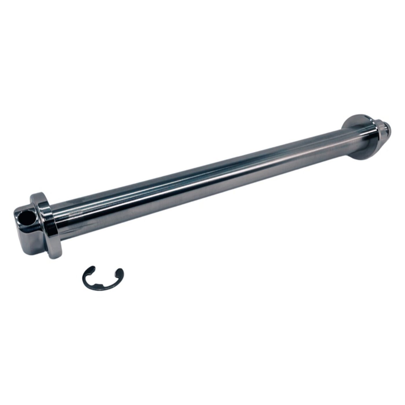 Offers great and lasting custom looks. Made from 17-4 series polished stainless steel, which offers sheer and tensile strength comparable to that of chromoly with superior corrosion resistance. Axle will not bend or break and is ball burnished for the toughest bearing surface. Comes with a high quality 12-point stainless steel nut and washer. Nut is secured by a stainless steel e-ring. Comes complete with instructions and anti-seize. OEM replacement reference 4300073. Note: Axle and nut must be 100% clean before installation and coated with provided anti-seize (Loctite LB8012). This includes ‘test fitting / hand tightening’. Cleaning axle, threads and anti-seize coating remains applicable when reinstalling after servicing wheel.