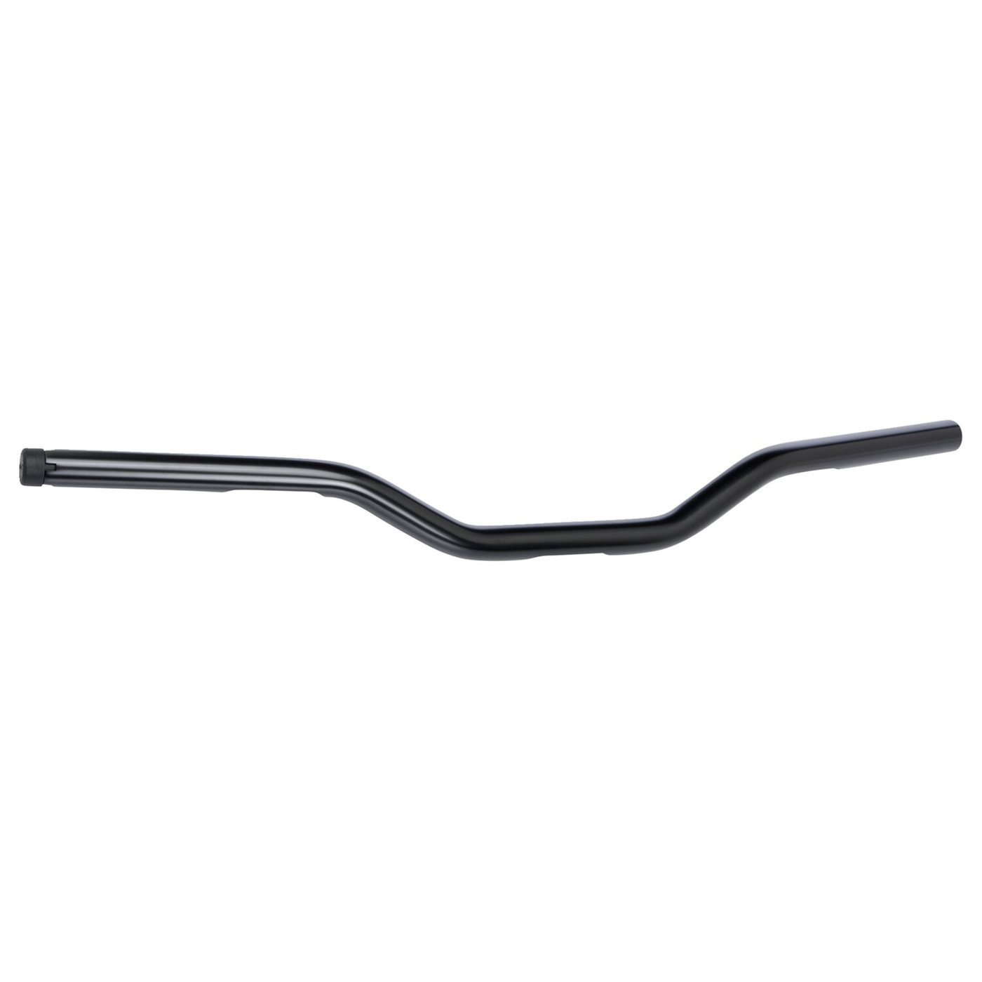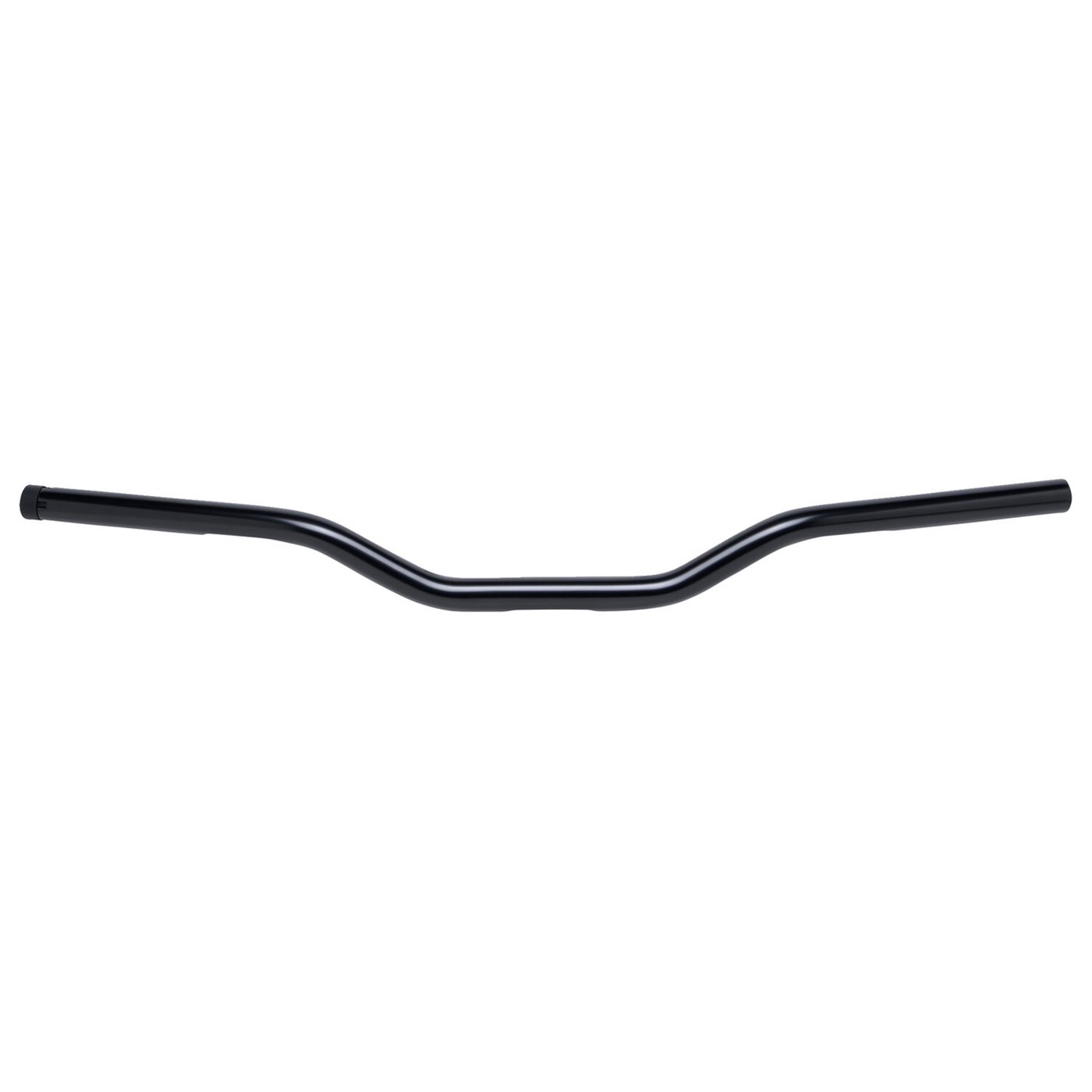 Satin black electroplated handlebar of Seamless 4130 chromoly steel – Approx. dimensions: 30.5″ (77.5cm) wide x 2.25″ (5.7cm) rise x 5″ (12.7cm) center width x 2.5″ (6.4cm) pullback. Note: Compatible with mechanical and e-throttle (Throttle By Wire). Tube end comes with a special (removable) plug to compensate for the shorter throttle (right) side bar length when running e-throttle. Note: Check your local MCS dealer or the MCS sales department for exact type of approval and validity on bike model and years on the test report.