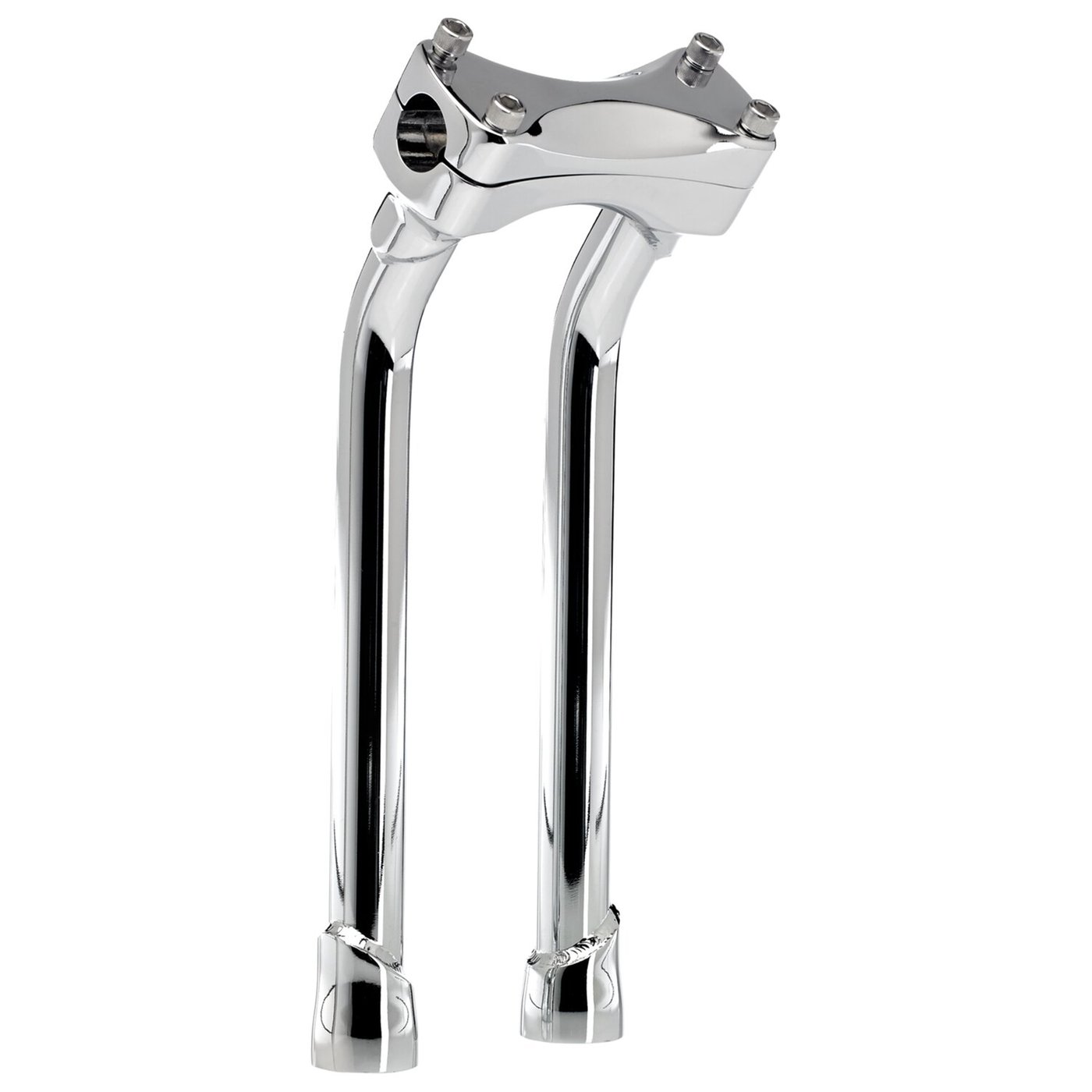 Chrome plated. This comes with approval. With 2″ (5.1cm) pullback. For 1″ (25.4mm) handlebars. Constructed from investment cast steel upper & threaded lower. Riser tubes are TIG welded seamless 4130 chromoly with 3mm thick tubing and 1/2-13 threaded mounting holes which will take stock riser bolts. Spacing is 3-1/2″ (89mm), to fit most H-D top triple trees. The top clamp bolt pattern will take stock H-D speedo & tach brackets. Note: Check your local MCS dealer or the MCS sales department for exact type of approval and validity on bike model and years on the test report.