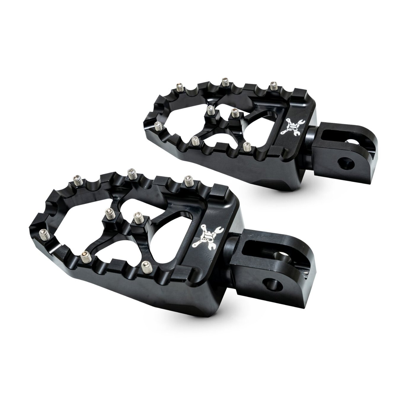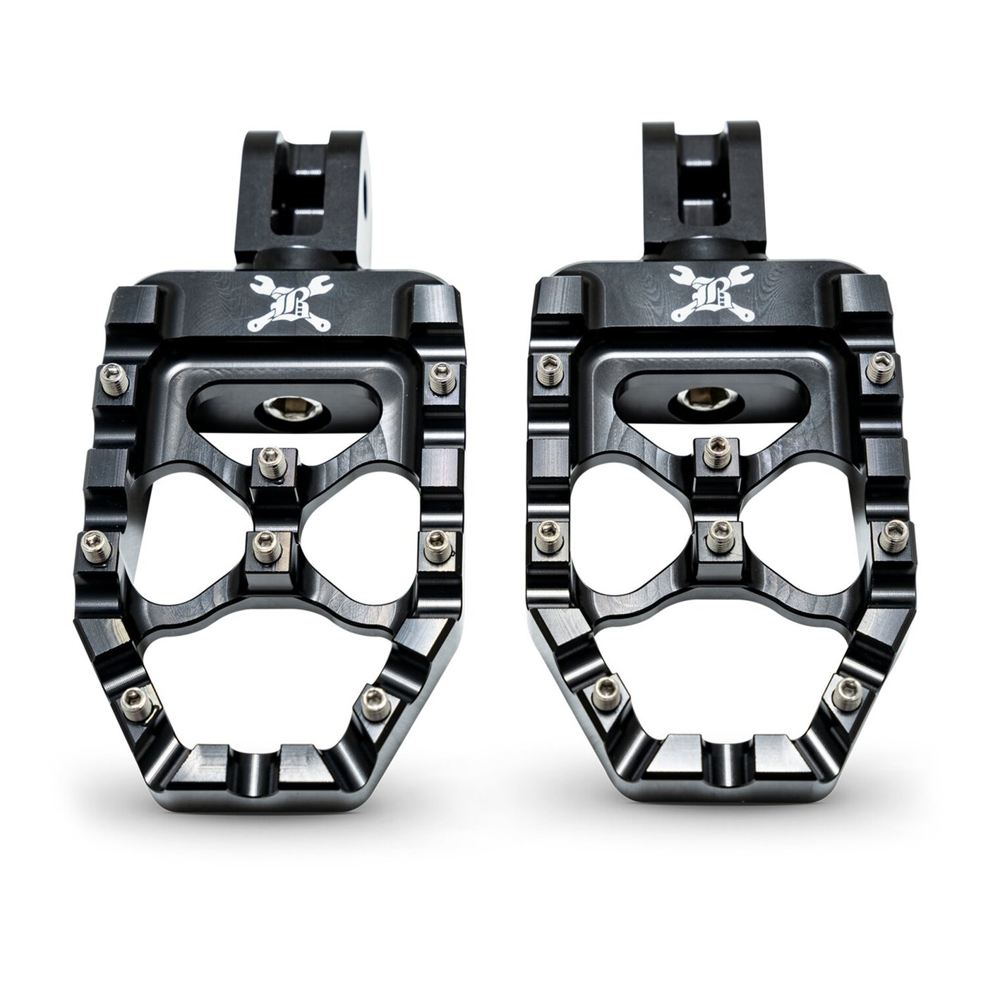 – Satin black powder coated steel – Square-shaped for a modern twist on the classic motocross aesthetic – Etched with the iconic Burly Brand logo for a distinctive look – Crafted from lightweight, high-quality aluminum alloy for optimal performance – CNC machined to precision, ensuring durability and a sleek finish – Adjustable clevis system for personalized positioning – Set screws provide secure foot-traction for various riding styles, on or off road. Note: See 997500 for matching rider foot pegs.