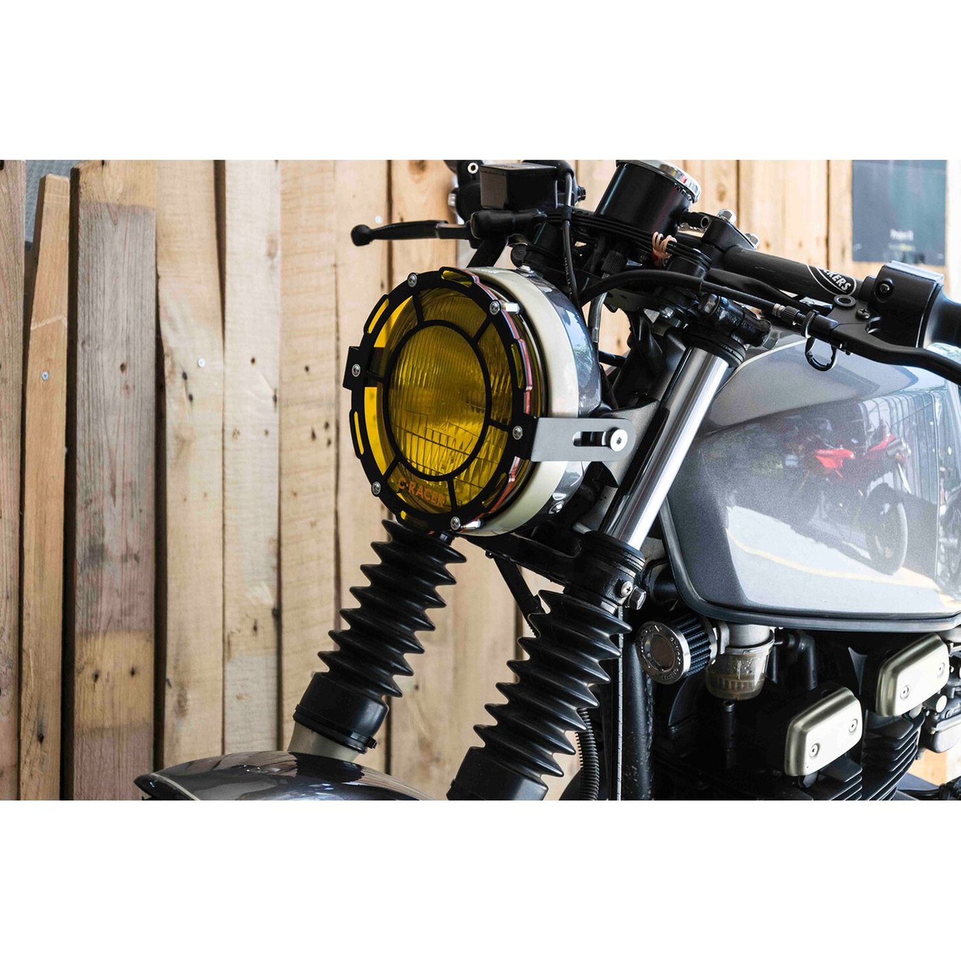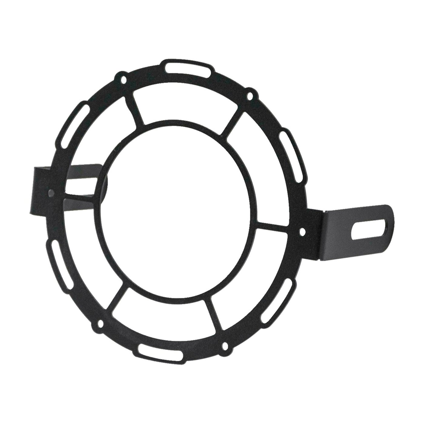 Diopter style. Universal black powder coated steel headlamp grill with side mount. Made to offer headlamp lens protection, but also offers awesome custom looks. Compatible with 7″ (17.8cm) to 8″ (20.3cm) headlamps. Comes with clear, smoke and yellow plexiglass lenses to fit your style. Note: Installation modifications may be required.