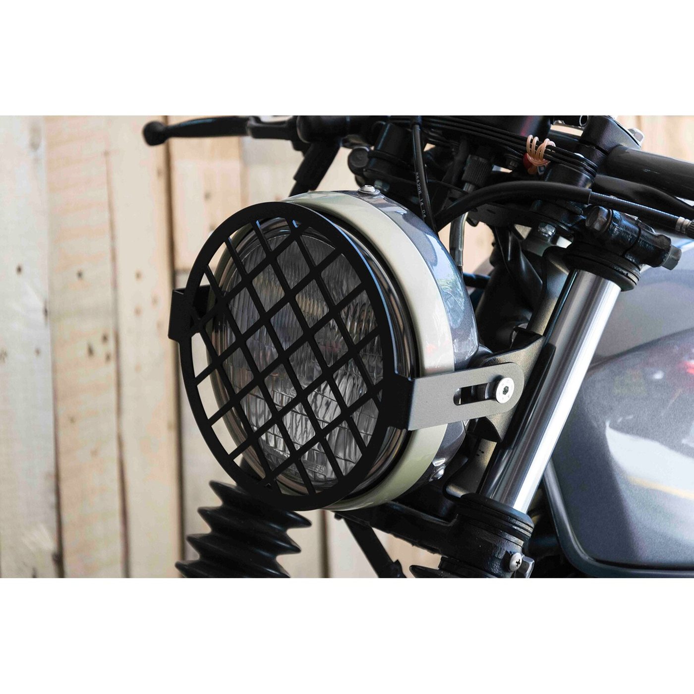 Masher style. Universal black powder coated steel headlamp grill. Made to offer headlamp lens protection, but also offers that tough ‘ready for anything’ look. Compatible with 7″ (17.8cm) to 8″ (20.3cm) headlamps. Compatible with most side mount headlamps. Note: Installation modifications may be required.