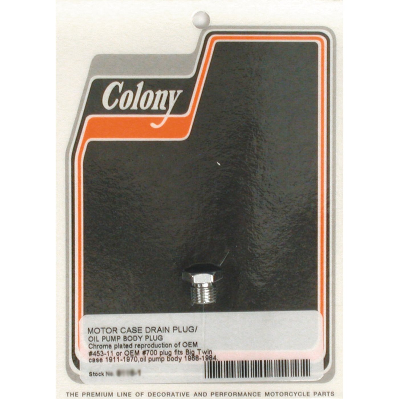 Home > Parts > Engine > Lower End > Oil Pumps > Colony, crankcase drain plug / oil pump plug. Chrome