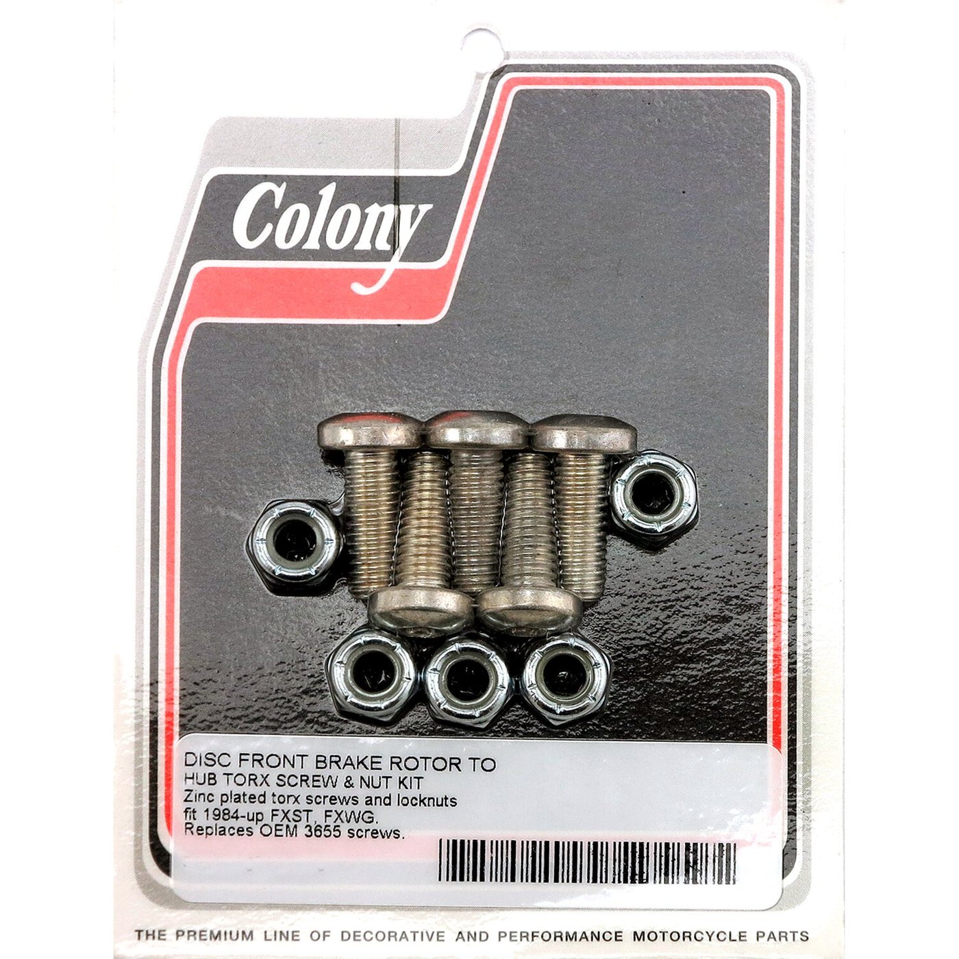 ColonyColony, front brake rotor bolt & nut kit. Flat torx Zinc 599681