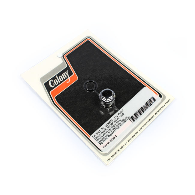 Chrome. Hex head. Fits oil screen, check valve and relief valve.