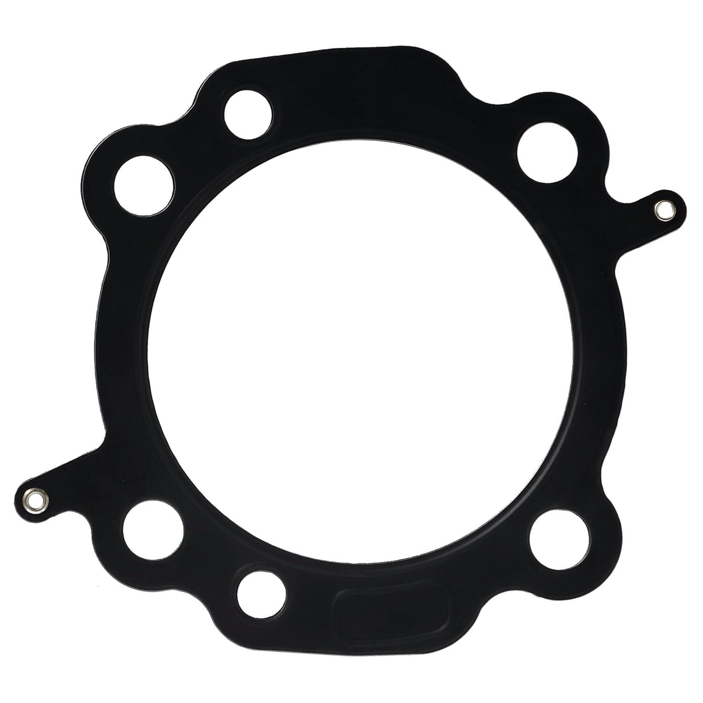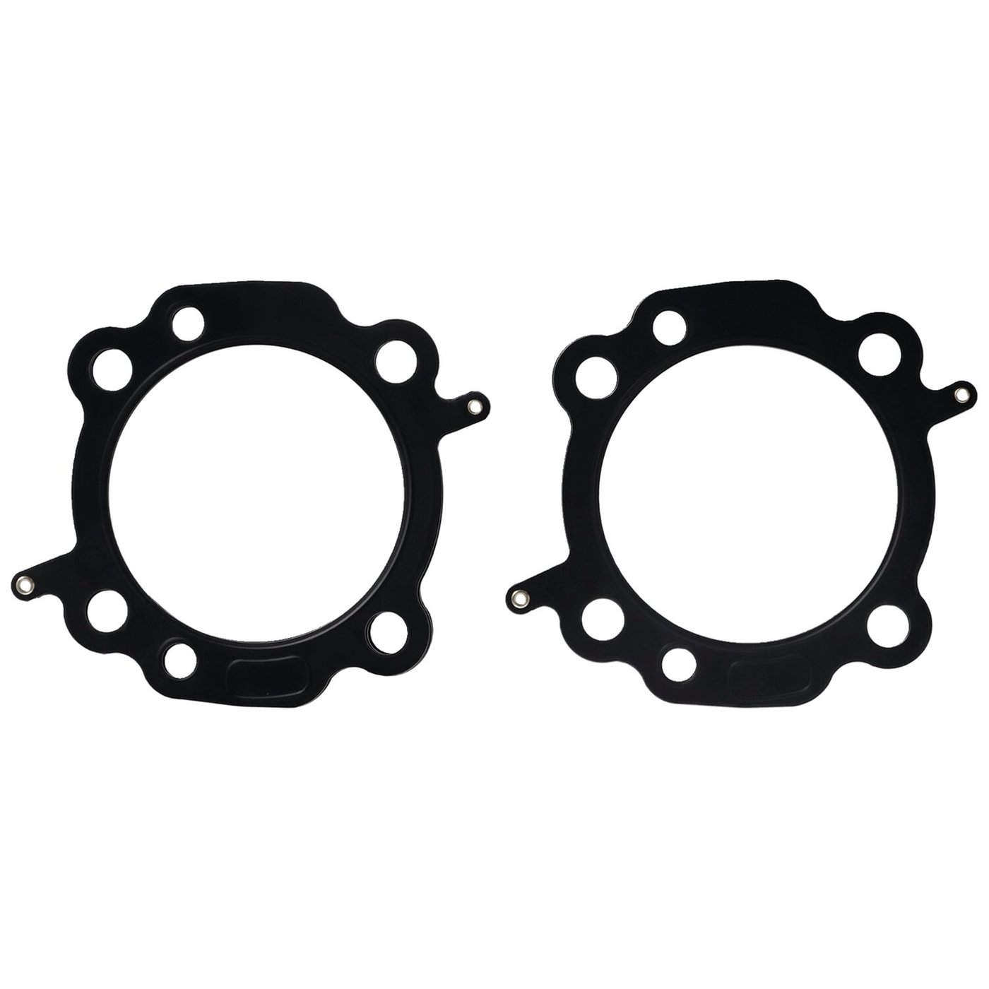 MLS (Multi Layer Steel). Front & rear gasket for one engine. 3-7/8″ (3.875″) fits 103″ OEM H-D Twin Cooled engines only. Will not fit 103″ non-Twin Cooled models. Stock Twin Cam gasket is approx. .040″ thick. OEM replacement reference 16500066. MLS (Multi Layer Steel) explained: MLS consists of a top and bottom layer of embossed stainless steel with both side coated with 250°C high temperature polymer rubber layer. The inner ring(s) are also stainless steel. The gasket layers are rivited together, outside the gasket surface, for ease of installation. The outer layers are embossed and both sides coated with a 250°C resitant polymer rubber layer. MLS head gaskets eliminate the use of dowel pin o-rings, when in use.