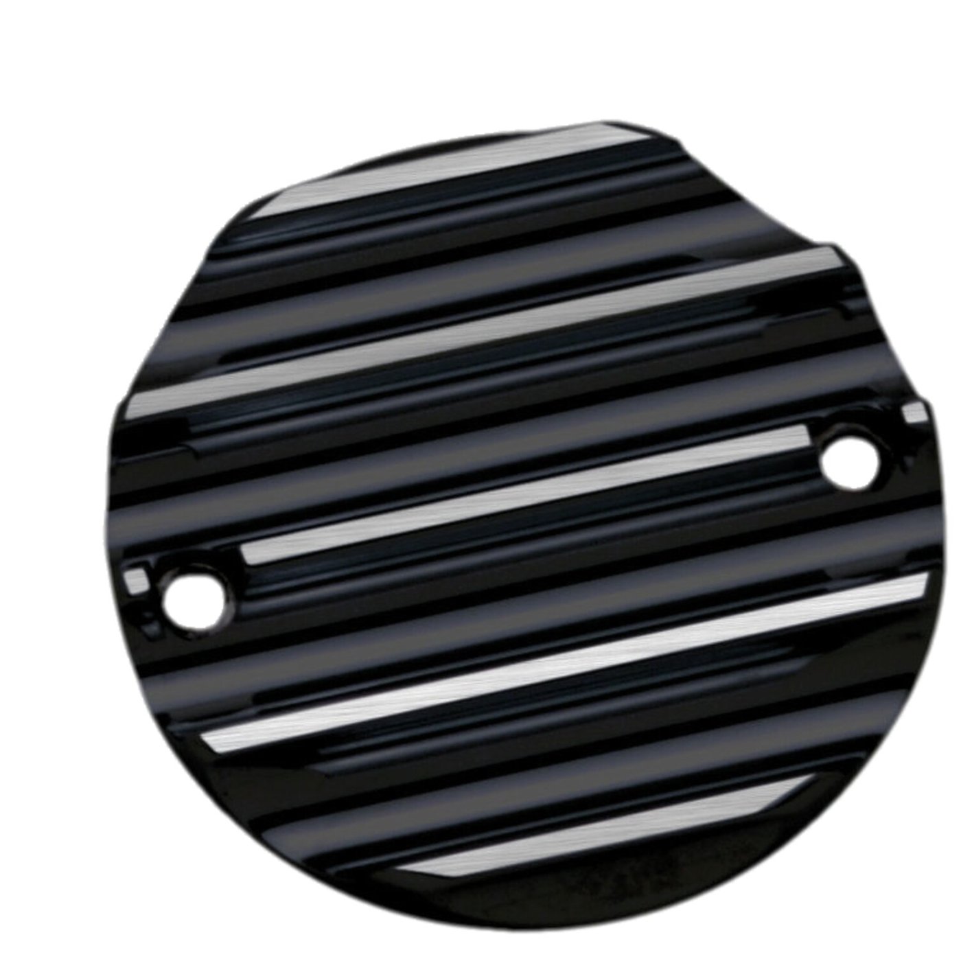 Black anodized CNC machined aluminum with Contrast Cut machined edge. With 2 horizontal mounting holes.