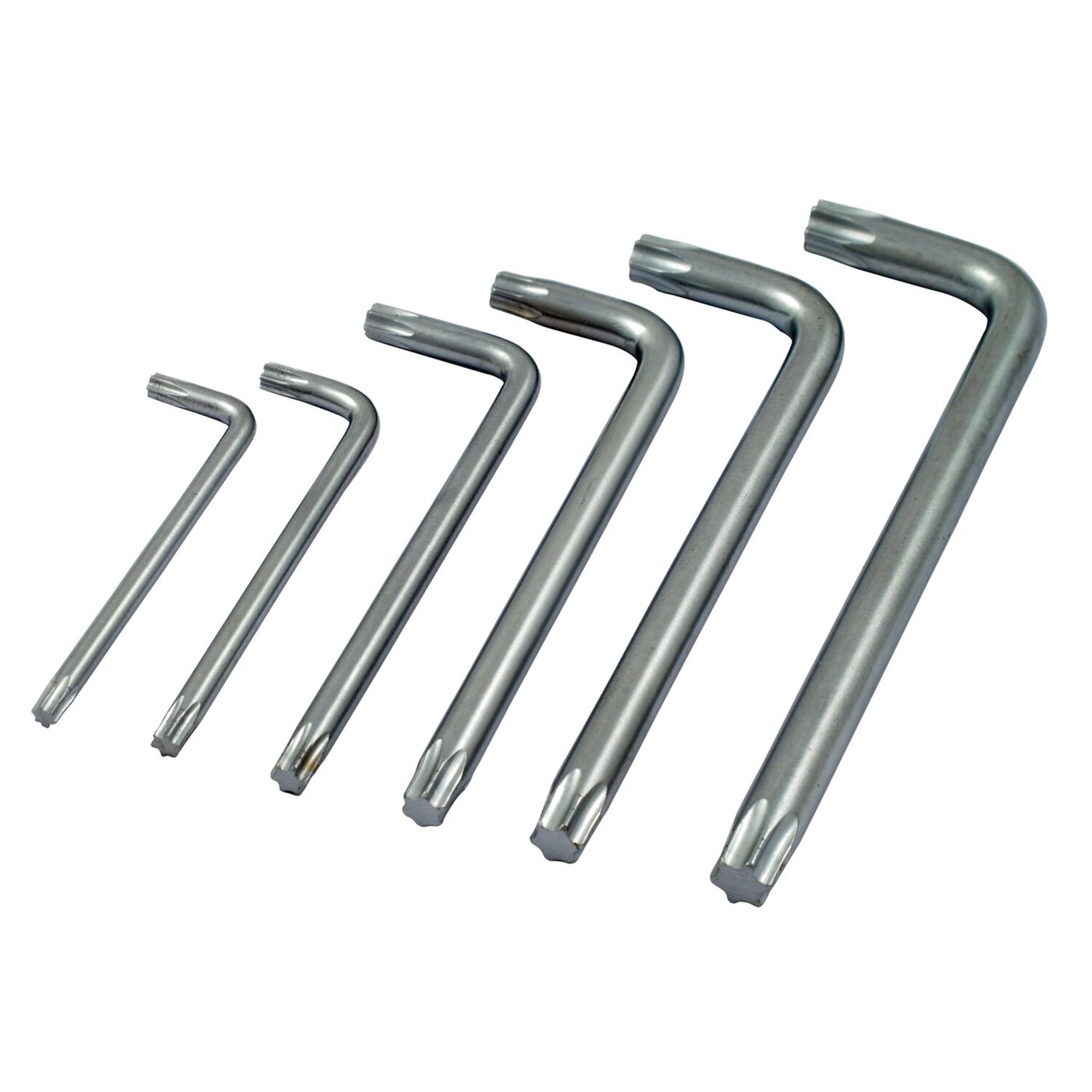 Top grade materials and workmanship. 6 pieces Includes T20, T25, T30, T40, T45 and T55 Torx® wrenches.