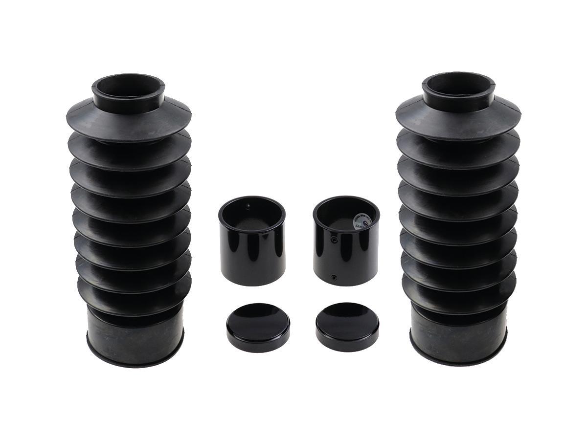 Cult-Werk 6-Piece Fork Covers with lower Fork Rubbers Short Version, Plain, with OEM Headlamp Mask and relocated OEM Front Turn Signals Black Gloss Powder Coated