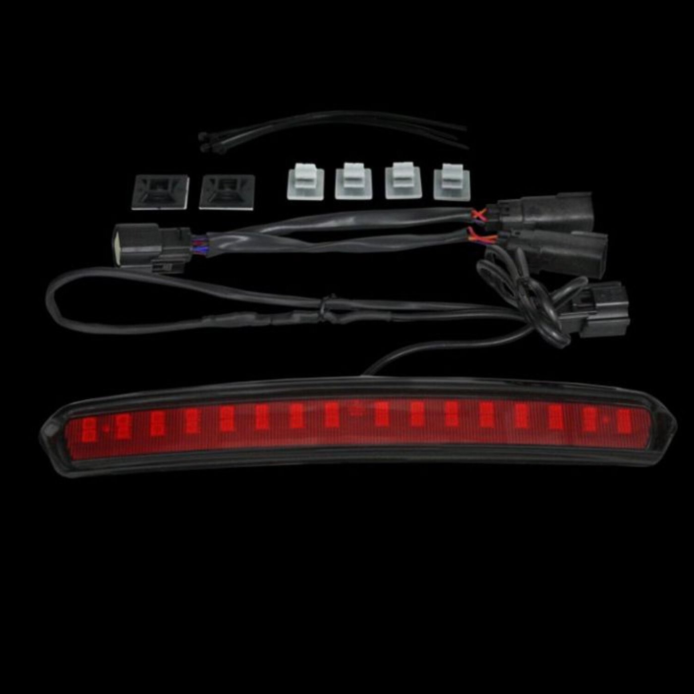 LED light unit to mount to the top of your Tour-Pak®. Adds 32 run/brake LEDs and 16 LEDs per side for the red turn signal. The Light unit comes pre-taped for a peel & stick application to the top of King & Chopped style Tour Paks®. Includes plug and play wiring harness for simple installation.