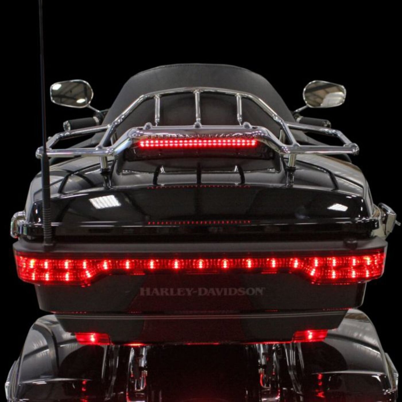 Adds an additional running and brake light as one row of 24 super bright 5mm LEDs, which are weatherproof sealed behind a lens. The unit is installed with the included mounting hardware to the underside of Add-On, Standard and Air Wing Tour Pak® Luggage Racks (OEM 79179-08 or 53000063).