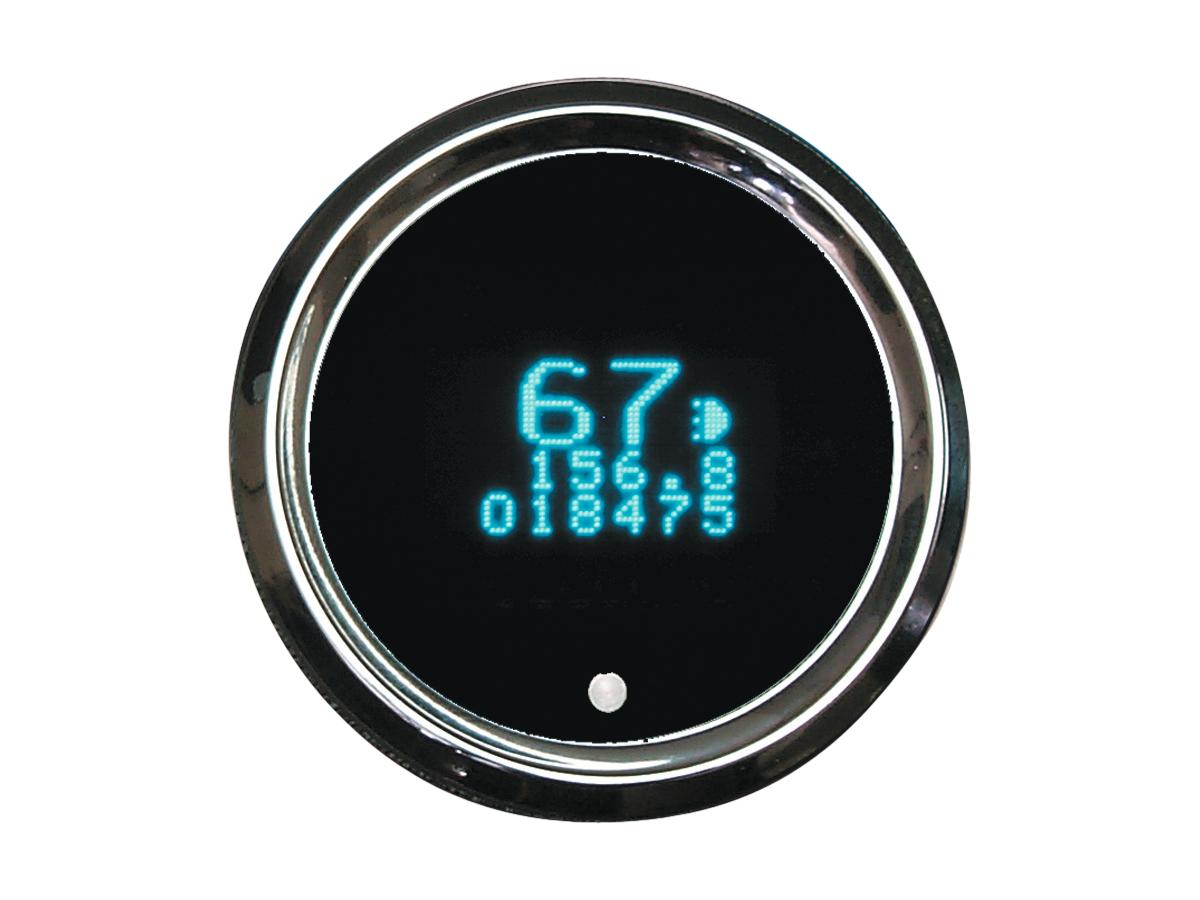 Dakota Digital Round Mini Speedo/Tacho Combo Instrument Scale: 255 mph; 255 km/h; Scale Color: black Chrome 52.3875 mm