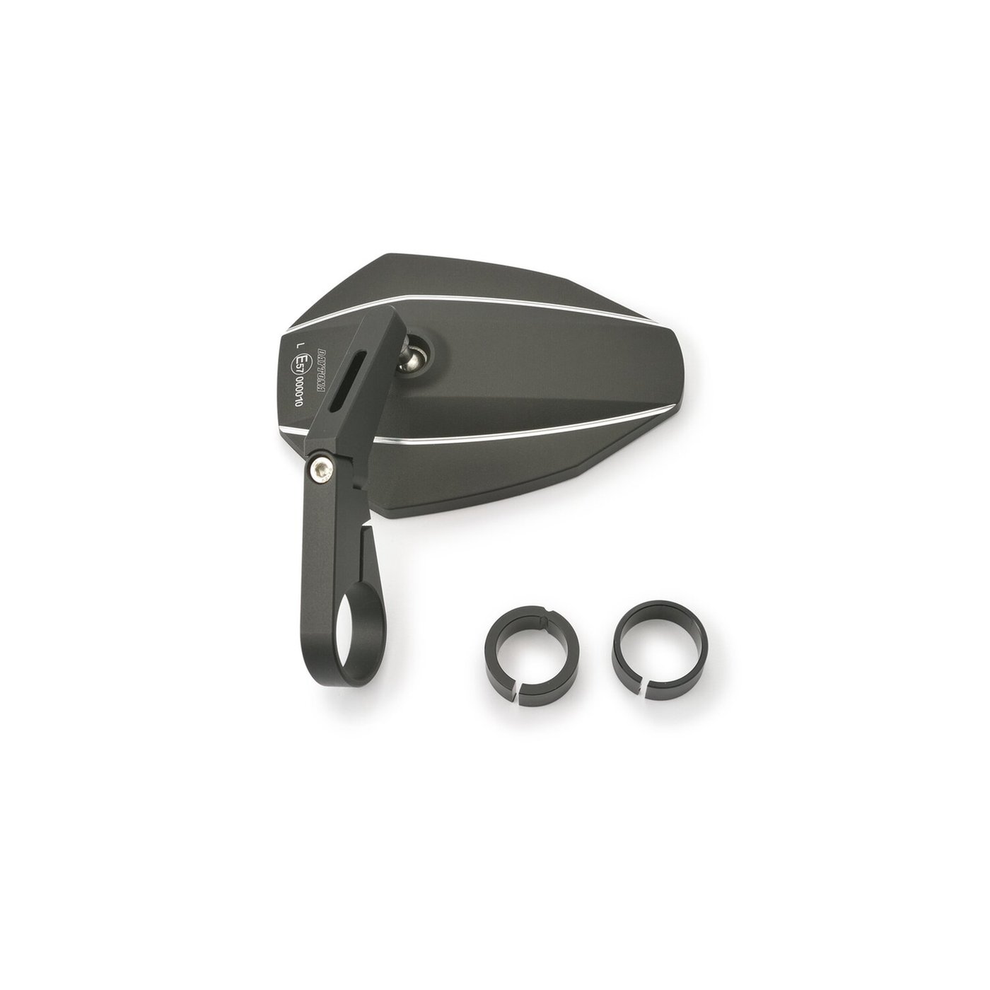 – Used to clamp to the end of the handlebar – With an aluminum mirror head and aluminum stem – For left or right side use – The inner diameter of clamp is 30mm – Includes 2 aluminum clamp inserts to adapt for 22.2mm & 25.4mm diameter handlebars – EC approved