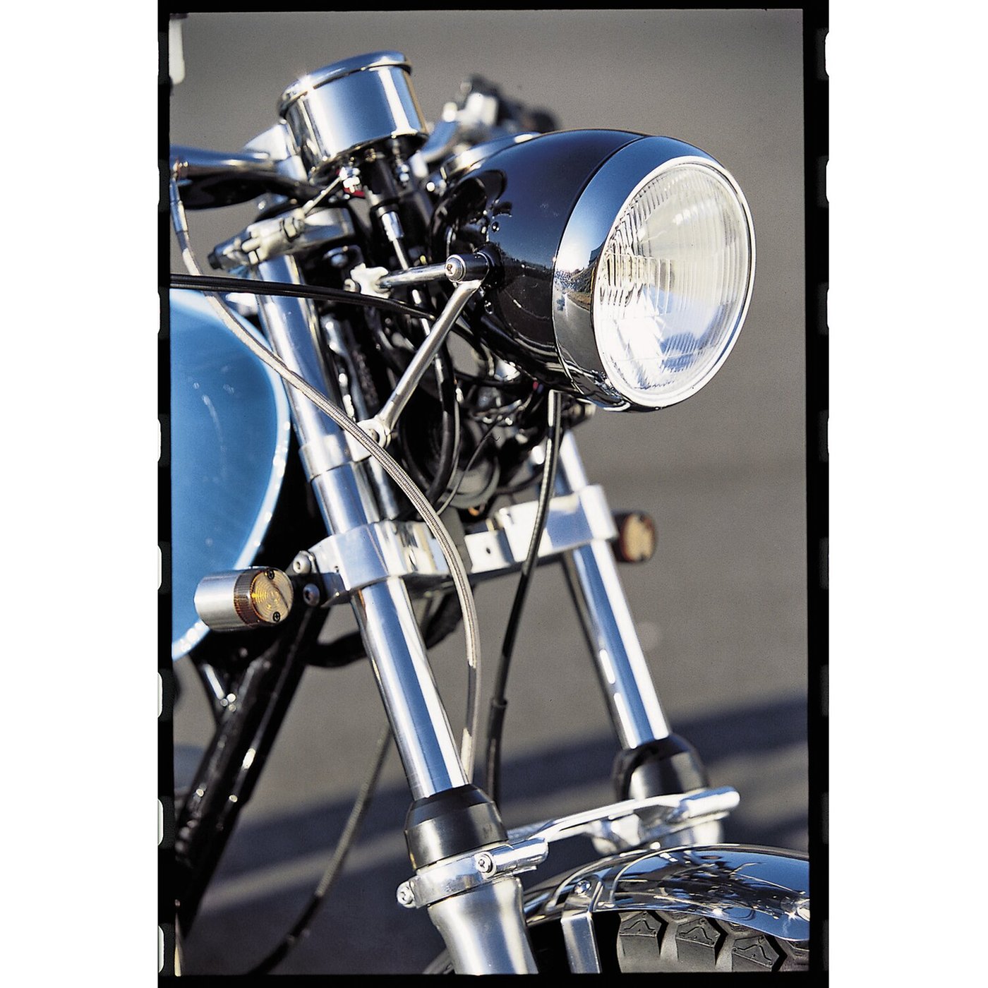 Old style side mounted headlamp with a strong reference to the 50’s and 60’s style headlamp designs, where the speedo was incorporated in the headlamp shell. This Vintage headlamp comes with 60mm speedo mounting hole in the rear section of the headlamp housing. – Black housing with chrome trim ring – With 55/60W H-4 bulb – ECE approved lens – 60mm speedometer hole. Note: Designed for use with 60mm diameter Velona speedo or tachometers series. See our speedo chapter. Note: For an optional style matching fork tube mounted headlamp bracket see 510134 black steel (for 39mm tubes), 510133 polished stainless steel or 510136 black steel (for 41mm fork tubes).