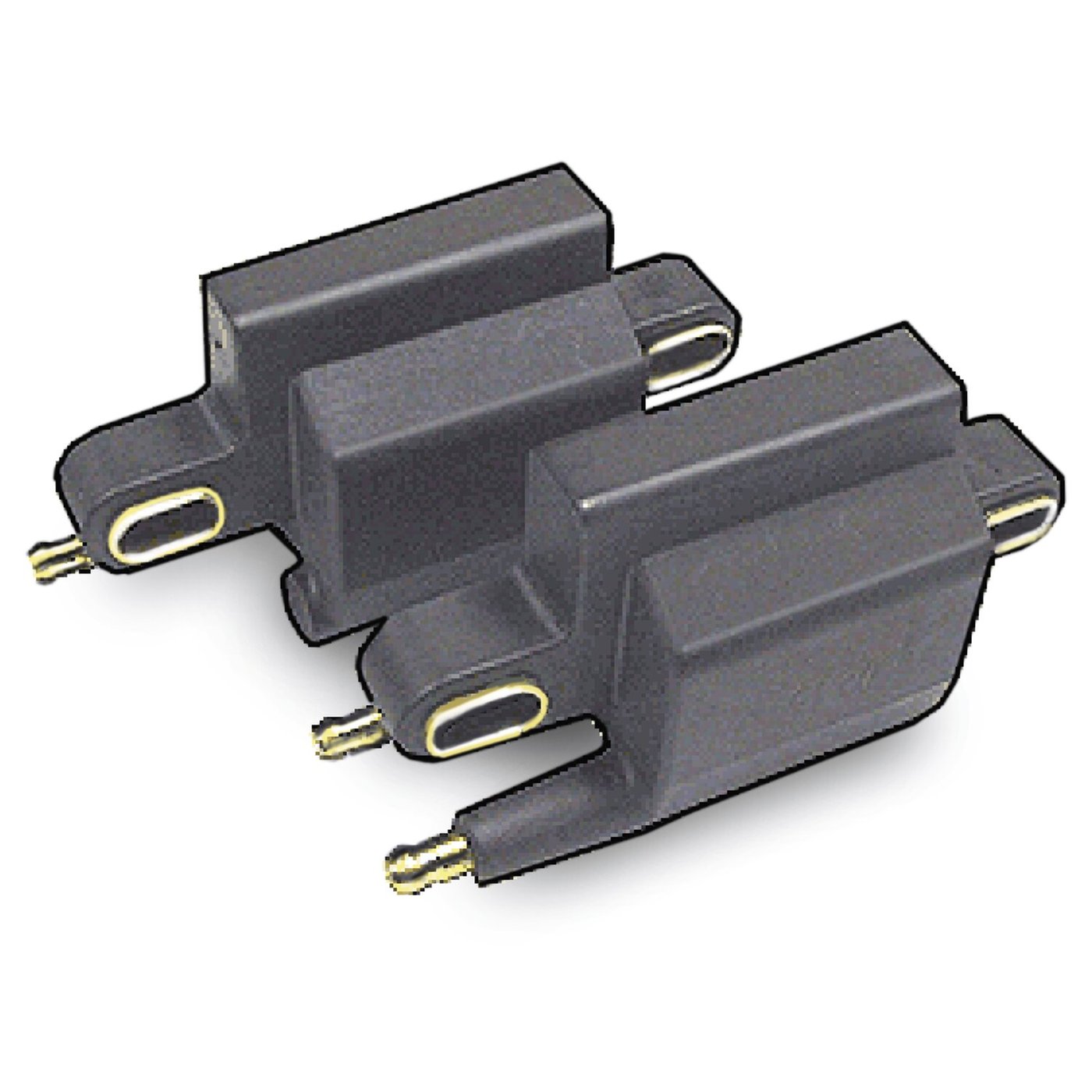 Single tower for 1 plug per coil, for single fire operation. Sold each, 2 required. 3 ohm primary resistance for most electronic ignition systems that use dwell control, like Dyna 2000i (Not for Dyna-S modules). 35.000 Volt output. One of the smallest coils available. Great for customs where coils need to be out of sight. Overall dimensions 4.2″ x 2.3″ x 1.6″ (10.7cm x 5.8cm x 4.1cm). Mounting hole distance 2.9″ min. to 3.5″ max. (7.3cm to 8.8cm). Note: It is recommended to use ignition modules & coils of the same manufacturer. Intermixing different brands may cause premature failure. Note: Difference between Single & Dual Fire: – Dual Fire – This is the way the earlier, pre-Twin Cam, engines work. A single coil is used and both spark plugs fire simultaneously. This is the simplest system. The ‘wasted’ spark is sometimes said to be horsepower robbing. – Single Fire – This is the way the stock 00-up Twin Cam engines work. Two separate coils will fire the spark plugs independently and only the spark plug of the cylinder that is on compression stroke will be fired. It is said that these engines vibrate less and can improve power. The effects will become more pronounced with hotter cams and higher RPM.
