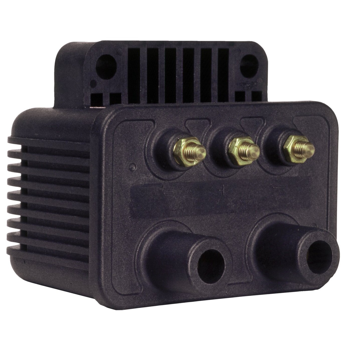 Single fire coil. For single plugged head (2 spark plugs total) in single fire applications. 3 ohm primary resistance. Compatible with Dyna 2000i and most other lectronic ignition systems. Note: Not compatible with Dyna-S ignition modules, which require 5 ohm primary resistance. Note: It is recommended to use ignition modules & coils of the same manufacturer. Intermixing different brands may cause premature failure. Note: Difference between Single & Dual Fire: – Dual Fire – This is the way the earlier, pre-Twin Cam, engines work. A single coil is used and both spark plugs fire simultaneously. This is the simplest system. The ‘wasted’ spark is sometimes said to be horsepower robbing. – Single Fire – This is the way the stock 00-up Twin Cam engines work. Two separate coils will fire the spark plugs independently and only the spark plug of the cylinder that is on compression stroke will be fired. It is said that these engines vibrate less and can improve power. The effects will become more pronounced with hotter cams and higher RPM.