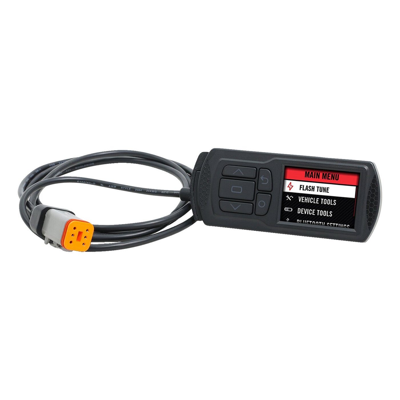 CAN-bus ECU. This is a flash-tuning & diagnostics tool with multiple applications. Adjust fuel injection / ignition settings and read & delete trouble codes of your stock Delphi ECU. The Power Vision is connected to the ECM / ECU diagnostic port. Compatible with a PC and Apple computers, editing tunes without a computer is not possible. This fuel tuner updates the tables directly within the ECU to change the air/fuel ratio and get you more power, speed or fuel-efficiency. This device can hold multiple tunes at once for each of your favorite modifications and can either be taken off the bike, after flashing the custom tune, or left on to be used as an extra instrument panel to monitor and record engine data. Custom Dynojet engineered tunes (fuel maps) can be downloaded from the Dynojet website. Tunes can always be edited with a computer to suit your preference and bike. Custom tunes are flashed to the stock ECM / ECU. Keep favorite tunes available in the Power Vision to easily reflash your favorite upgrade and drive style to optimize your motorcycle for a specific use. Stock tunes in the bikes ECU can be saved on the Power Vision. Offers: – Weather & shock resistant. – Flash Tune without a computer, quickly and easily. – Does not need to stay installed after flashing. – Load tunes from an Apple/Windows computer. – Pre-Configured tunes available to download for free. – Edit tunes with a computer. – User friendly & intuitive custom tuning software (Power Core C3 only). – Tune files supported in PowerCore C3 software. – Live data and data analysis capable in PowerCore. – Share and utilize tune license. – Ability to use tune already in the ECU. – Monitor data as a live diagnostics panel, while you ride. – Record performance engine data (data log) for later computer reviewing. – Retain dealer’s ability to service, troubleshoot and diagnose via Digital Tech. – Plug-and-Play wideband O2 AFR Support. – ECU wideband O2 closed loop fuel control (Target Tune compatible, with Target Tune module only). – Tune additional bikes with same device. A special tune license is required for each additional bike. – Color display with control buttons, no touch screen. – World class technical support from Dynojet via phone and / or email. Not possible / does not offer: – Share tunes from mobile app. – Ability to license additional vehicles from mobile app. – Edit tune without a computer (Quick Tune). – Tune files supported in WinPV (included Power Core C3 software is required). – Live data and data analysis capable in WinPV. – Autotune with OEM O2 sensors and / or wideband sensors. – View / Record instant and trip MPG. – No touch screen display. Note: Once a Power Vision is used on a bike it is and will remain ‘mated’ to that specific ECU. It requires a low-cost tune license for each additional bike. Note: See 993559 for Power Vision 3 Autotune kit to allow tuning using real time AFR (Air Fuel Ratio). **Dynojet product not available to purchase by Dealers located in the UK**
