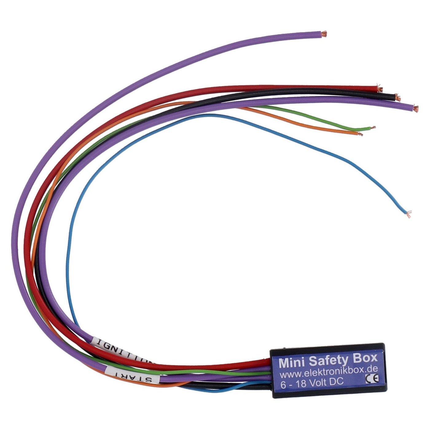 This safety module checks the neutral and sidestand/jiffy switch inputs, to enable or disable the ignition or starter motor. The ignition remains on when the side stand is out, so the bike can be started. But when the bike is put in gear the ignition will be killed if the side stand is not in. – Dimensions: 38 mm x 16 mm x 11 mm – Body material: Black ABS waterproof molded – Input voltages range: 7 – 18 Volt – Connections: Inputs 0.14mm², Outputs 0.5 mm² – Max. Output current: 5 Ampere for brake and indicator outpus – Maximum ambient temperature: 80 degrees Celsius