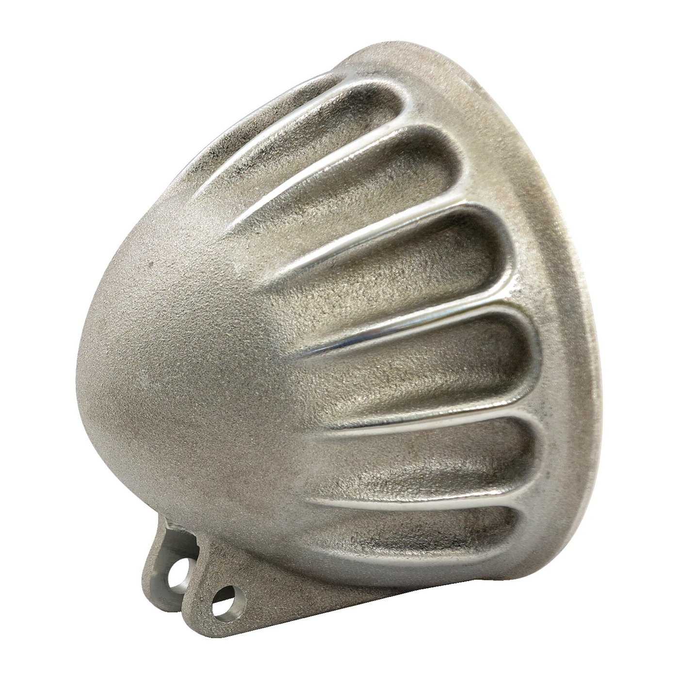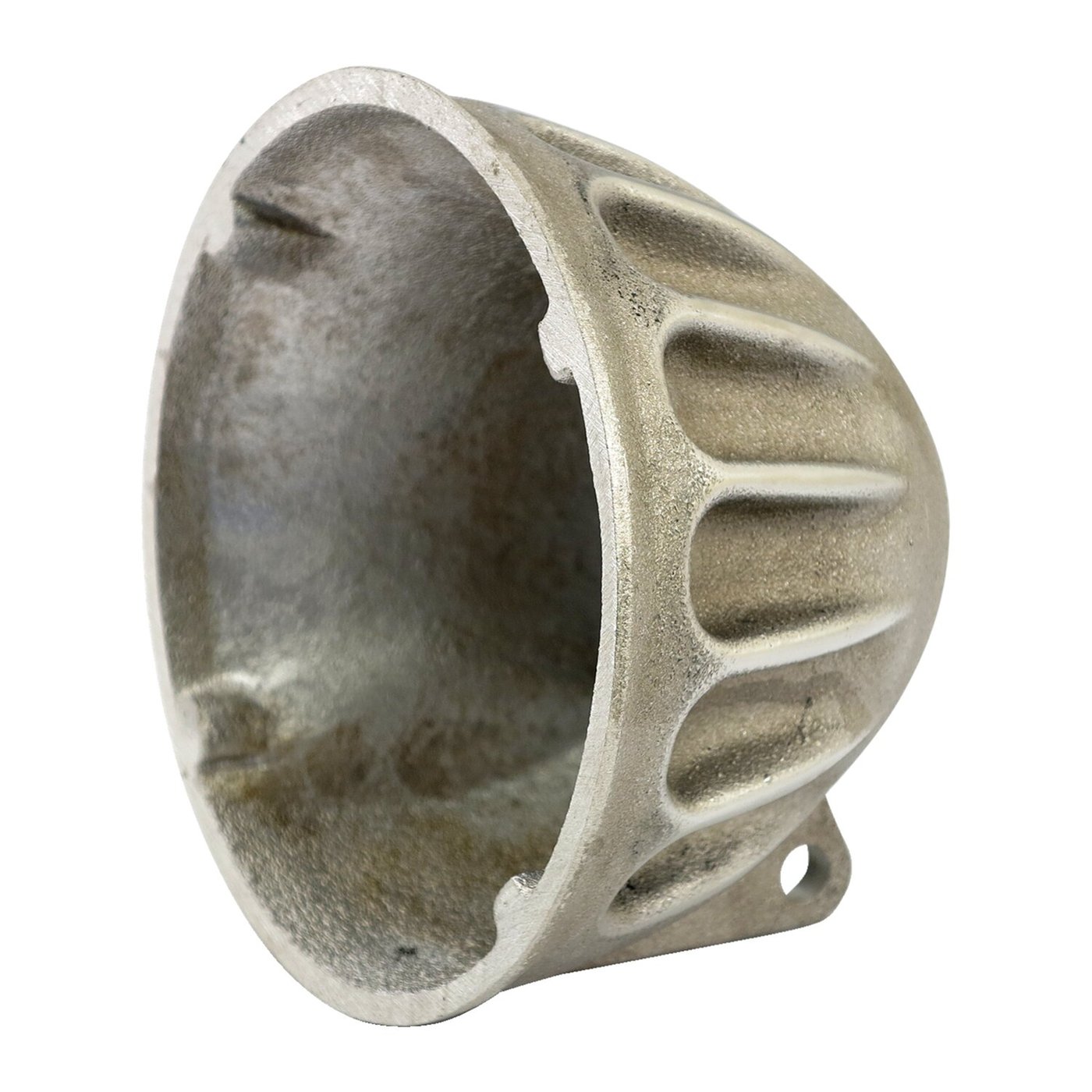 – Raw cast aluminum with semi-polished ribs. – Ribbed cast aluminum in a retro design to surpass any regular old-time look. Note: 5-3/4″ headlamp unit, trim ring and custom bottom mount block must be re-used or purchased separately. Note: Not compatible with LED units.