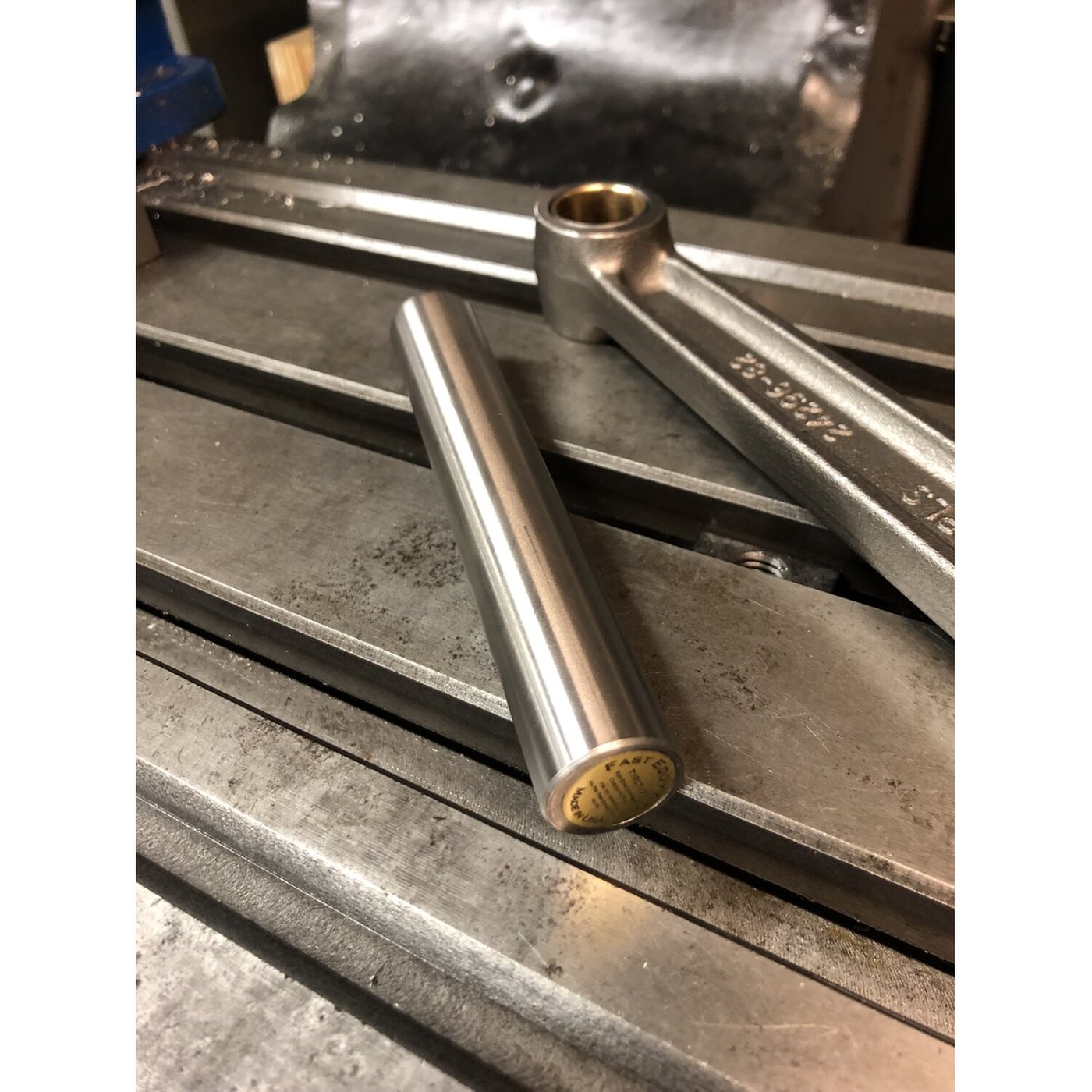 For rods with .791″ diameter wristpins. Used to check connecting rod straightness with bottom end of engine assembled. Centerless ground from premium US-made 4130 through-hard steel. 5″ long, 1/2″ longer than most similar products, for easier use in both stock and big bore applications. How to use: Slide tool in wrist pin bushing. Slowly rotate flywheel until tool contacts the crankcase gasket surface. Slide 2 small strips of paper under the tool and make sure they each pull out with an even amount of tension. If corrections are needed, adjust (bend) rod until paper pulls out with even tension on both sides.