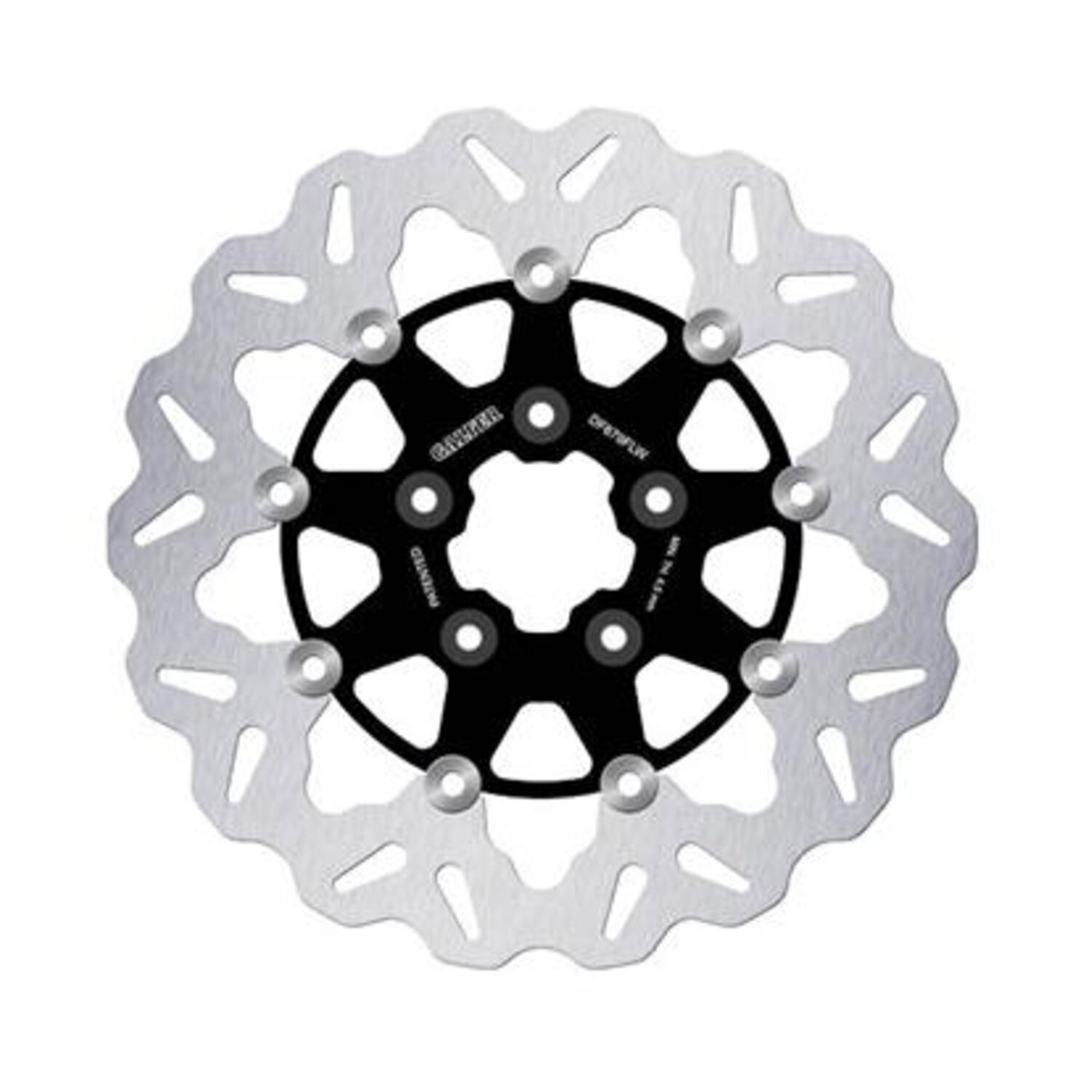 292mm (11.5″), 5mm thick, 50mm ID, 8mm (5/16″) counterbored mount holes, 3.25″ BCD. Mount style G. OEM replacement reference 44136-84A and 44136-92. Note: With approval. Check your local MCS dealer or the MCS sales department for exact type of approval and validity on bike model and years on the test report. Note: All Galfer brake rotor designs are symmetrical. This allows left or right side installation without optical issues. Galfer Disc Wave® discs are the most popular. Thanks to their larger brake track perimeter, they enhance cooling capacity and allow for even wear of the brake pads. They undergo a cathodic electrocoating treatment to prevent corrosion. In the case of floating discs, they offer an improvement in weight reduction, and there are two variants: those with a high-strength anodized aluminum center (7075 T6 – 6082 T6) and those with a steel core (AISI 420).
