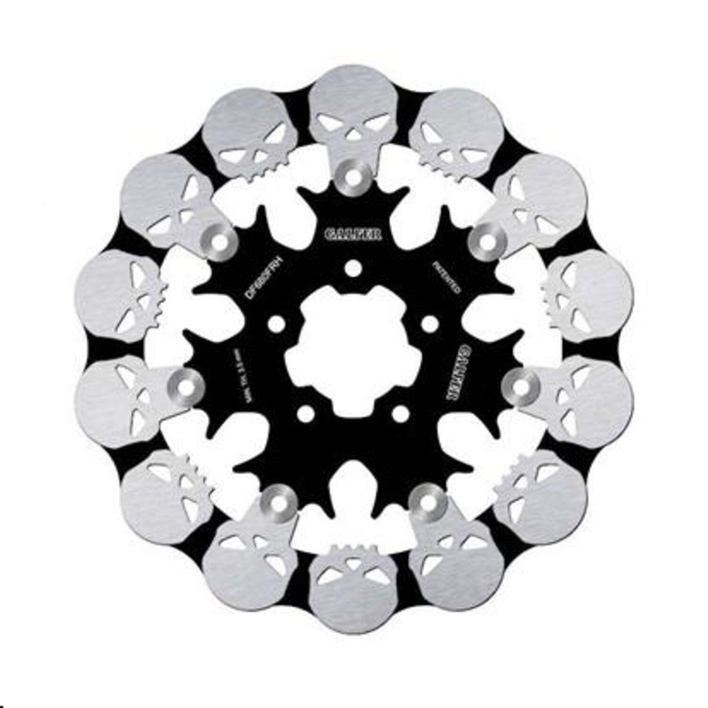 292mm (11.5″), 5mm thick, 56mm ID, 8mm (5/16″) counterbored mount holes, 3.25″ BCD. Mount style B. OEM replacement reference 44260-00, 44156-00 & 44360-00A. Note: All Galfer brake rotor designs are symmetrical. This allows left or right side installation without optical issues. Galfer Skull discs are of original design and feature custom skull motifs. They are designed for those who want to take the aesthetics of their customized motorcycle to the most extreme level. Available in a floating version, like their other variants, they come with an anti-corrosion treatment and are made of stainless steel (AISI 420).