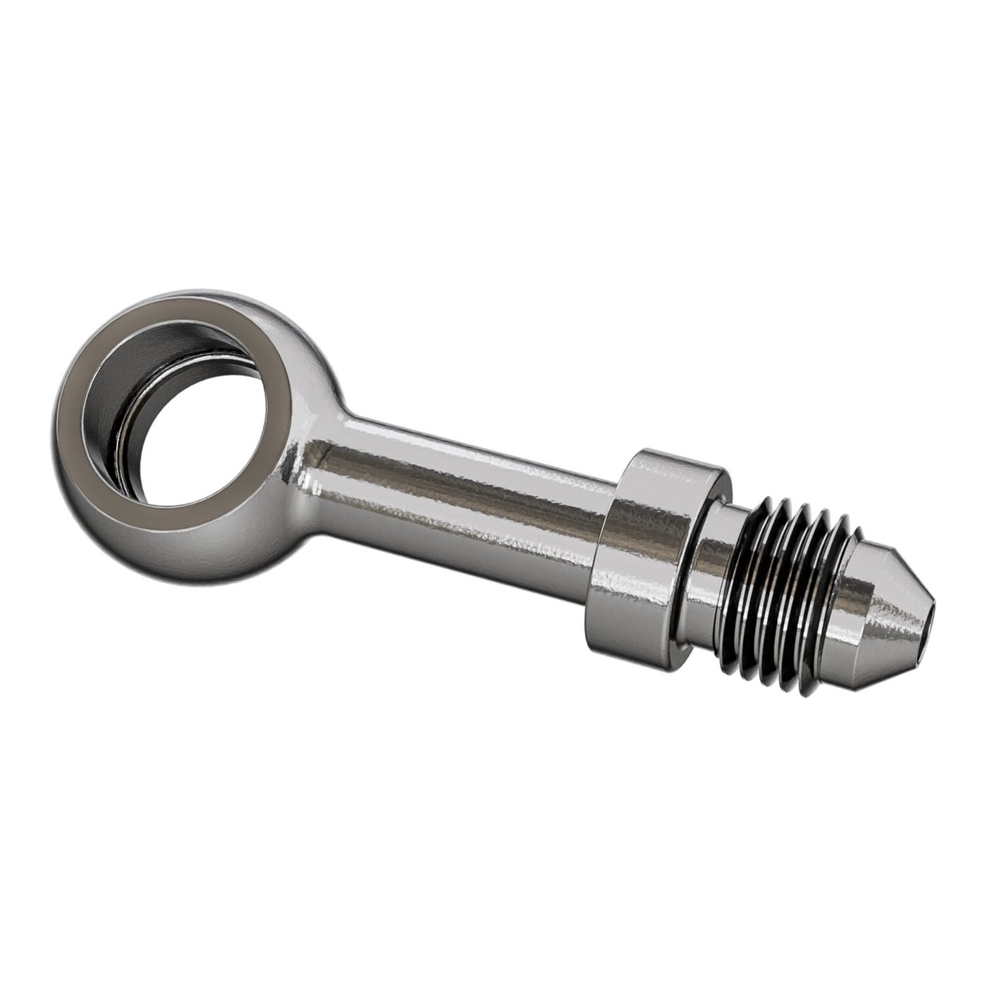 High polished stainless steel straight Banjo fitting, 10mm – 3/8″. Fits straight to Goodridge brake line kits.