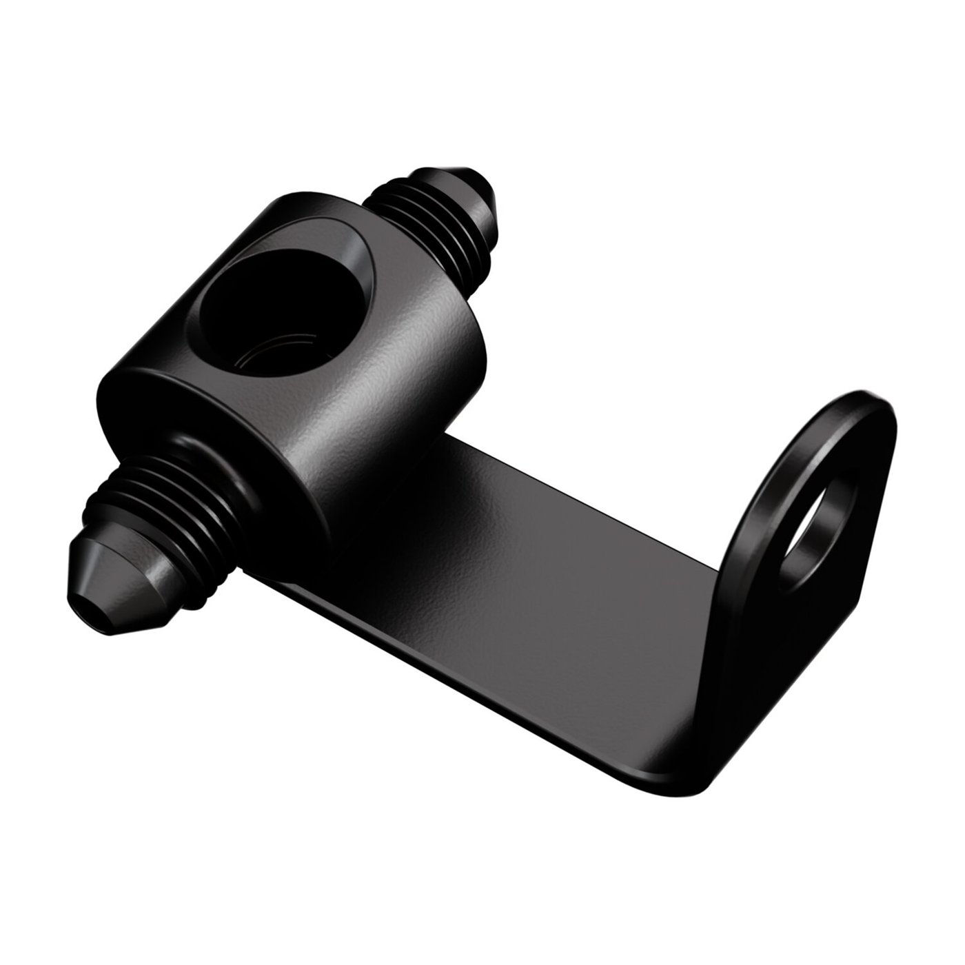 Black plated carbon steel. Round + Bracket. 2X 3/8-24 AN-3 + 1X 1/8 NPT for switch.