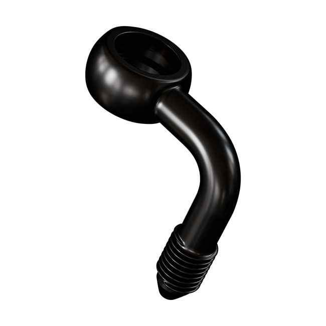 Black stainless steel Slimline 90 degrees Banjo fitting, 10mm – 3/8″. Fits straight to Goodridge brake line kits.