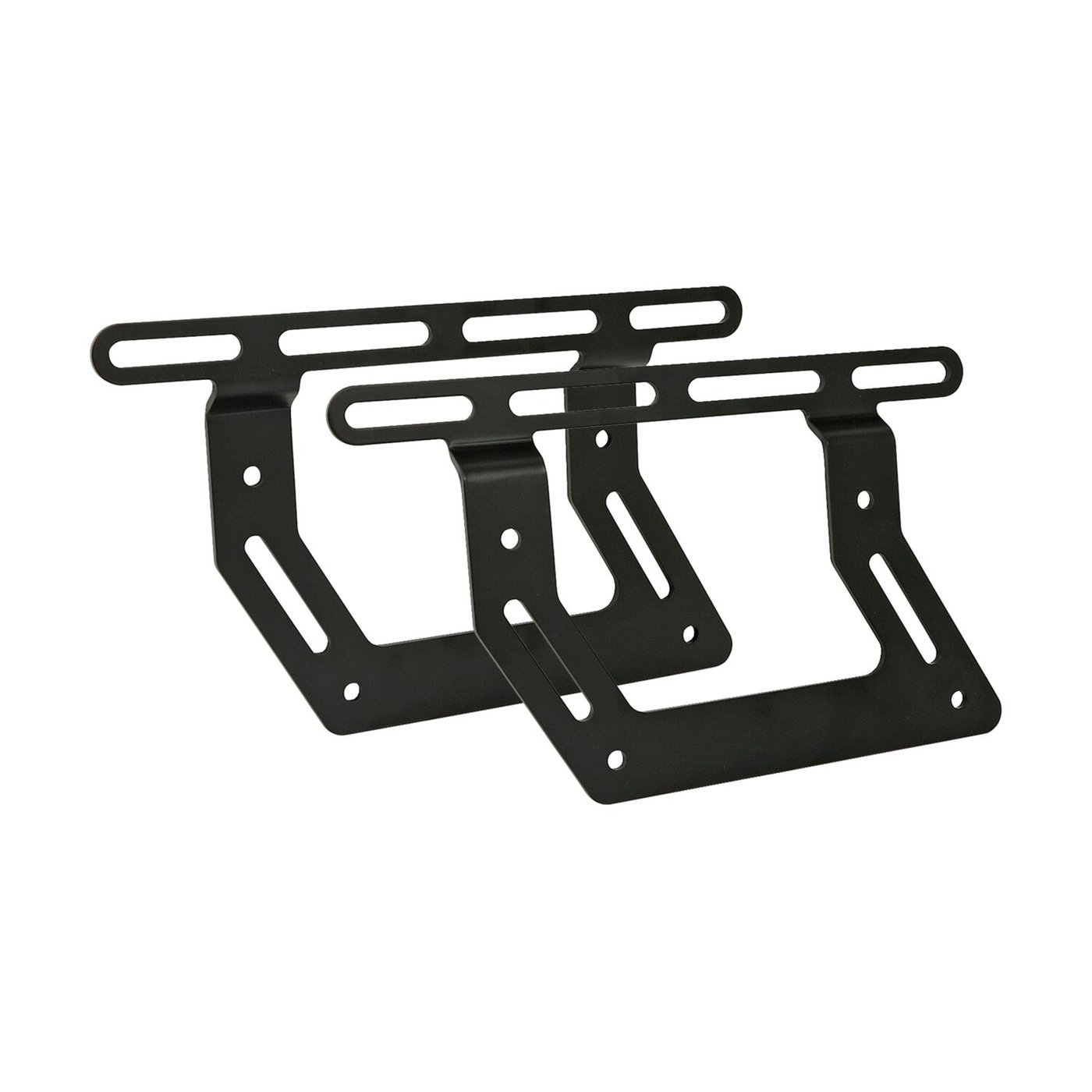 Bag is supported on the backside only. Black, flat strip steel. Max. load 5kg per side. Universal saddlebag support bracket set manufactured in flat steel with a matte black finish. This construction is easy to modify, weld and re-spray and can therefore be used for both H-D as non H-D models. Designed for use with Ledrie saddlebags of which the 4mm thick HDPE plates, in the rear side of the bags, are mounted to the supports. Note: See 559463 Mount kit for 91-03 Sportster, 559464 for 04-13 Sportster, 559465 For Softail, Dyna and 14-up Sportster. Note: Some models may require turn signal relocation.