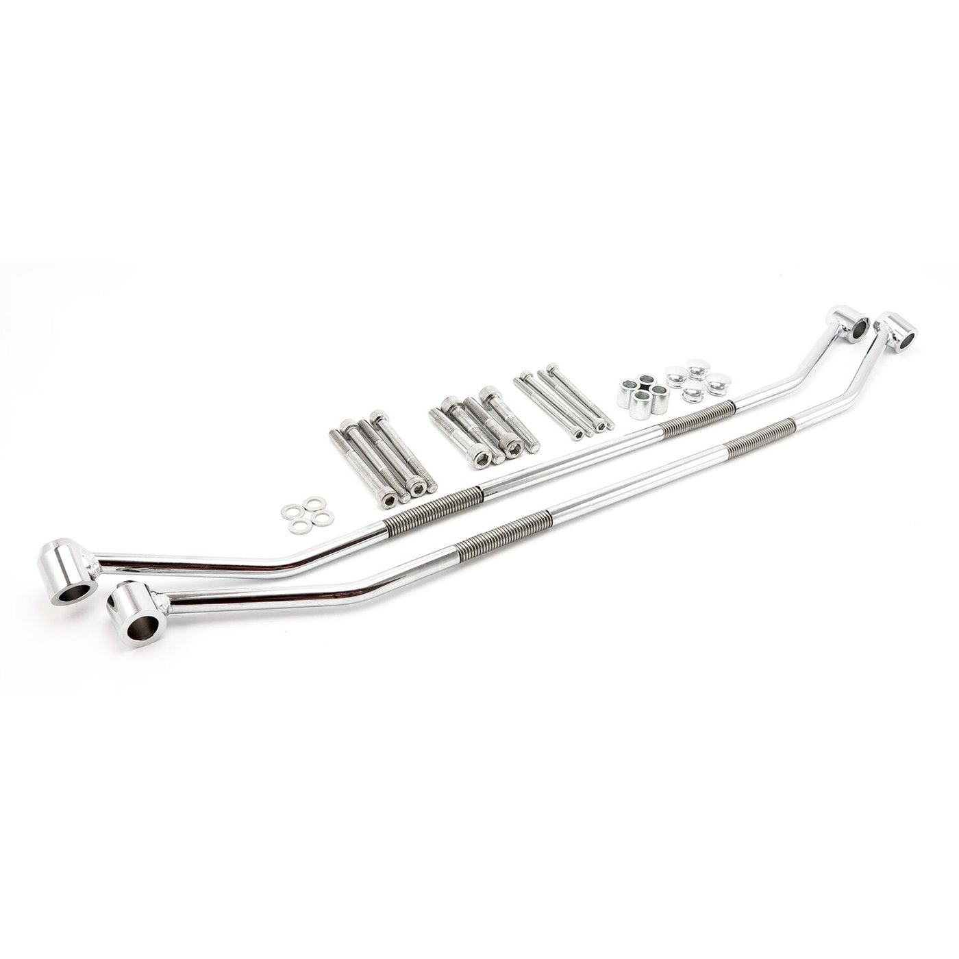 Round chrome steel. Incl. hardware. Max. load 6kg per side. Manufactured from chrome plated round steel bar, comes with hardware included and is compatible in many universal applications. Note: Turn signals may require relocation.