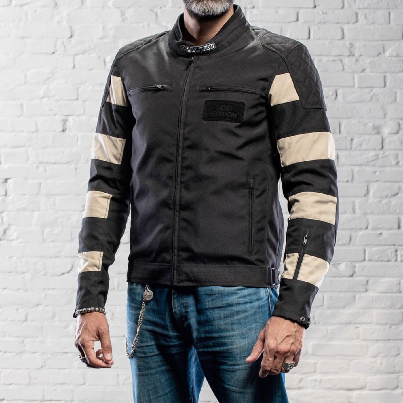 Holy Freedom Prison jacket is a CE approved jacket with striped sleeves for a sensational and decisive aesthetic impact. Features water repellent, adjustable cuffs, motorcycle closure with internal bellows, zip plus snap button, universal pockets for protections, 4 zipped front pockets, 1 zipped internal pocket plus 2 internal Velcro pocket. Enjoy total freedom on your next adventure with this Holy Freedom Prison jacket.