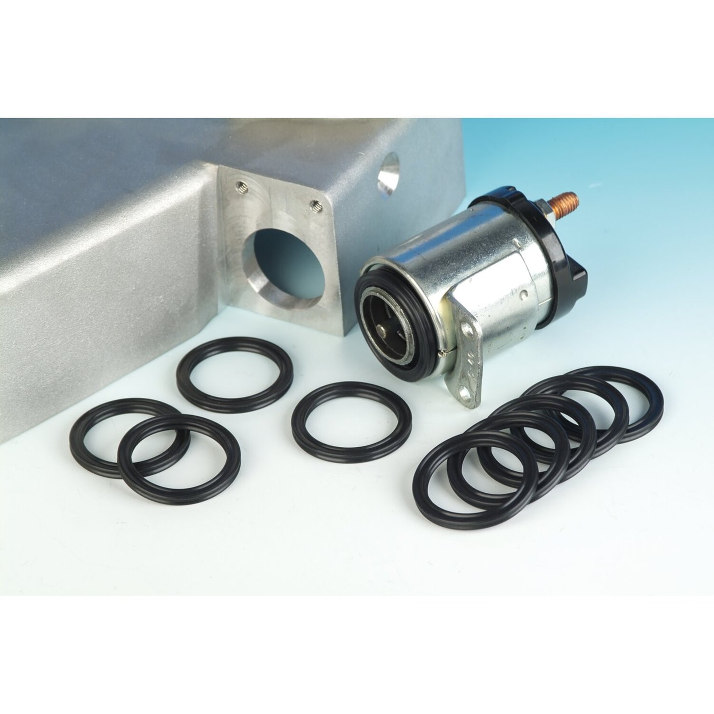 Quad rubber seal. Originally a foam seal for the solenoid on earlier L65-E84 models (OEM 60645-65) and a rubber o-ring (OEM 27060-55) on solenoids were used for 83-88 models. This James quad rubber seal is designed as a custom improvement and will fit as a direct replacement for both early (foam) and late (o-ring) models.