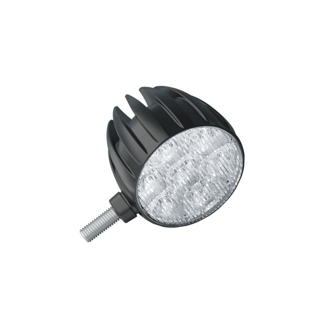 Cold white position front light. ECE approved for front use position light. It has a 3W input and an electrical voltage of 12V. Comes with a black aluminum housing and sports Kellermann’s high power LED technology for excellent visibility. The Dayron offers a full area lighting with an extreme light output in either position light or running light through the use of the latest Kellermann clear lens technology with polycarbonate lenses. Comes with a M8 adapter. Dimensions: 59,9mm long x 63,5mm diameter, weight 228gram.