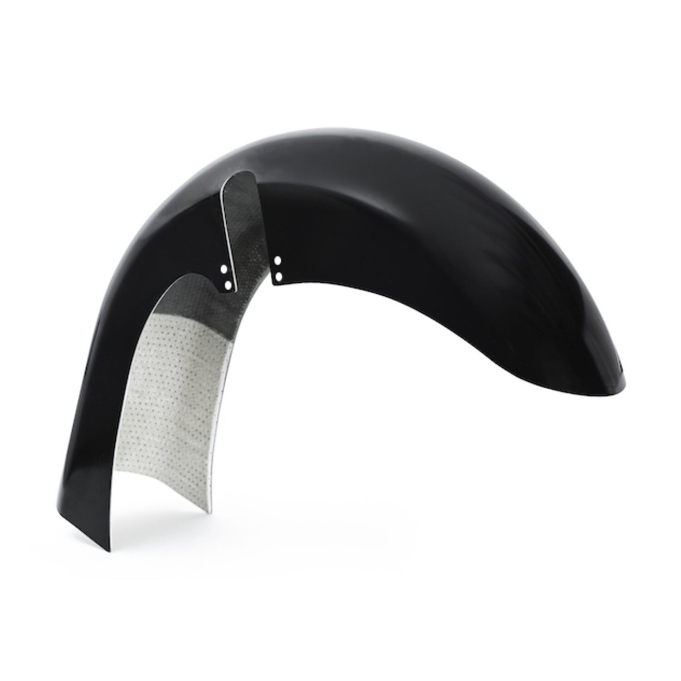 For fat 23″ x 5.50″ ‘Bulldog’ style wheels. A complete pre-drilled fender kit with bolt-on installation ease, it works in combination with the standard lower legs/fork sliders but special fork tube covers are required. Made of hand-laid unpainted black gel coated extra durable fiberglass that is very stiff, strong, straight and light. An additional ‘hardening layer’ is embedded for extra rigidity. Special CNC machined aluminum brackets and special stainless stiffening plates are included. Note: All parts require fitment checks before painting and final assembly. Note: These fenders must be used with special Slash Cut fork tube covers. Killer Custom 921653 or any other aftermarket item cut for wide wheels.