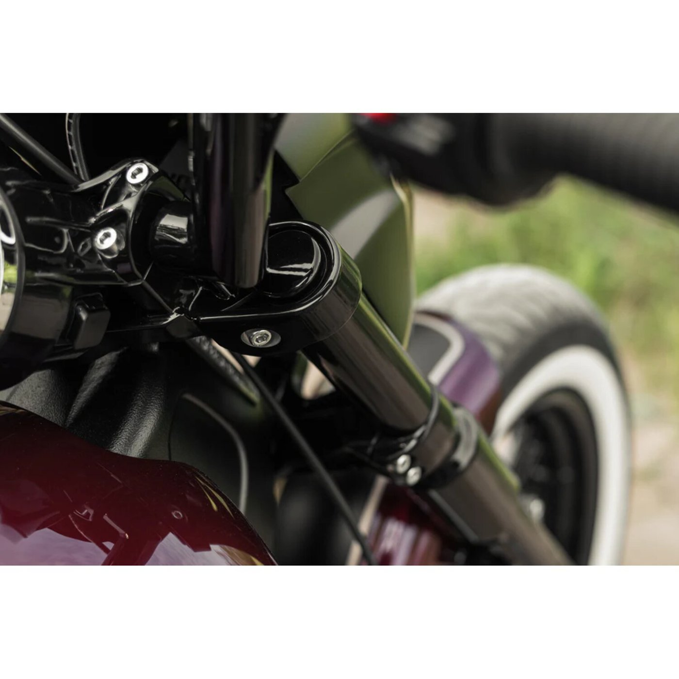 We have those Fork Tube Caps to cover the upper bolts. Perfect CNC machined billet aluminum and black powder-coated smooth finish will make your front fork look more aggressive and modern.
