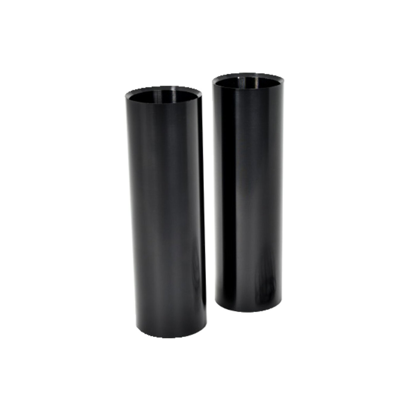 2-piece upper kit. Perfect for a visual Black-Out update. Manufactured from billet aluminum with CNC machined precision with a gloss black powder coated finish. These upper covers cover the fork tubes between upper and lower triple tree. Note: See 587879 for the matching lower cover set.