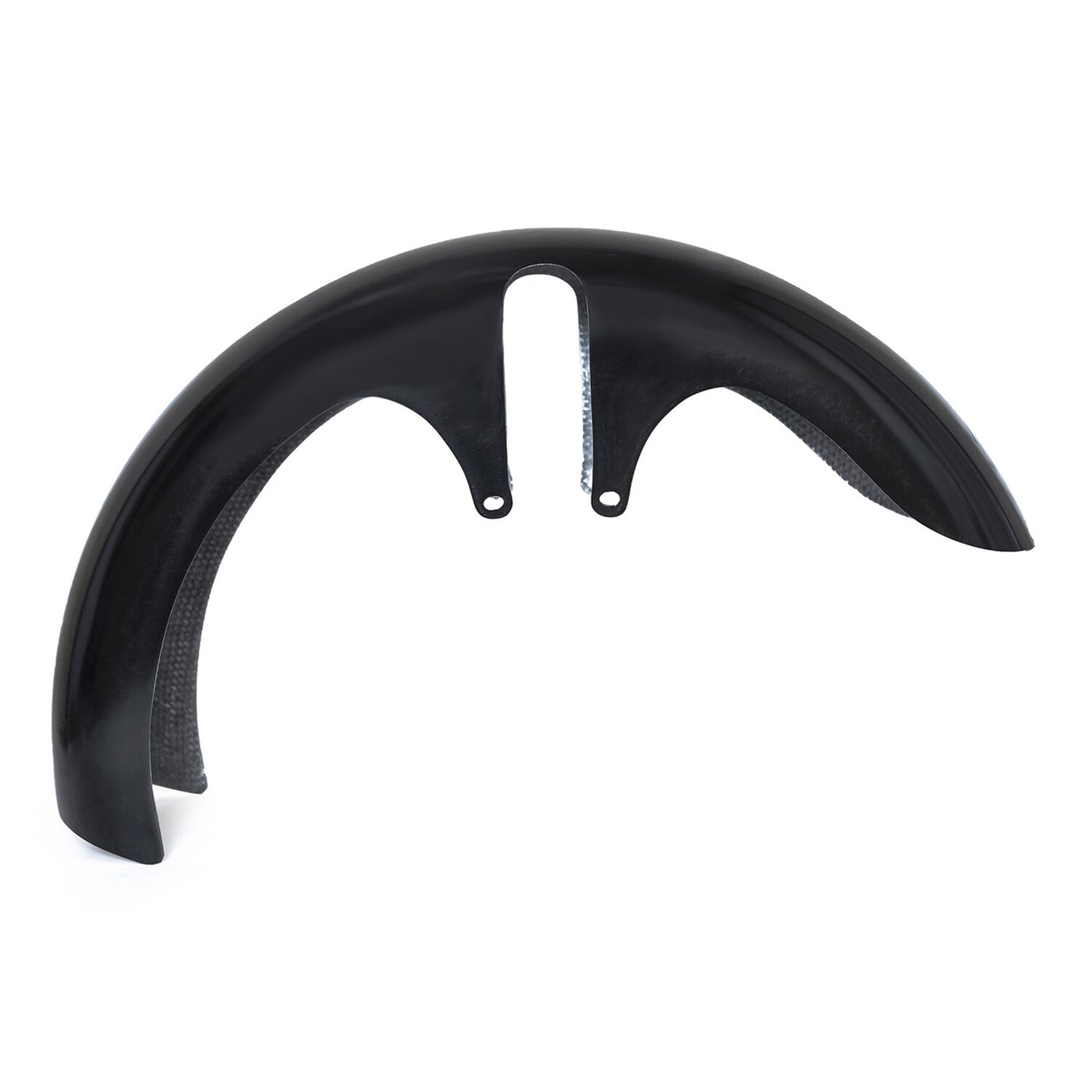 Black gel coated. Designed for use in combination with extra wide 21 x 5.50″ ‘Bulldog’ front wheels in combination with the OEM lower fork legs/sliders. Made of hand-laid unpainted black gel coated fiberglass that is very stiff, strong, straight and light. Comes complete with stiffening plates and installation hardware. Note: All parts require fitment checks before painting and final assembly. Note: This fender must be used with special Slash Cut fork tube covers. Killer Custom 921653 or any other aftermarket part cut for wide wheels.
