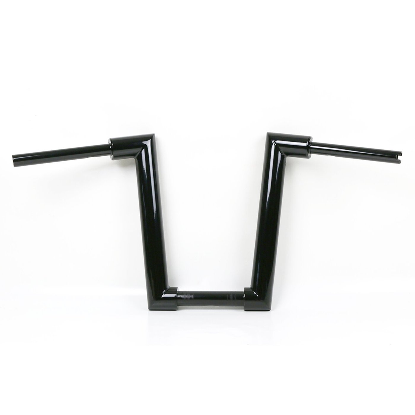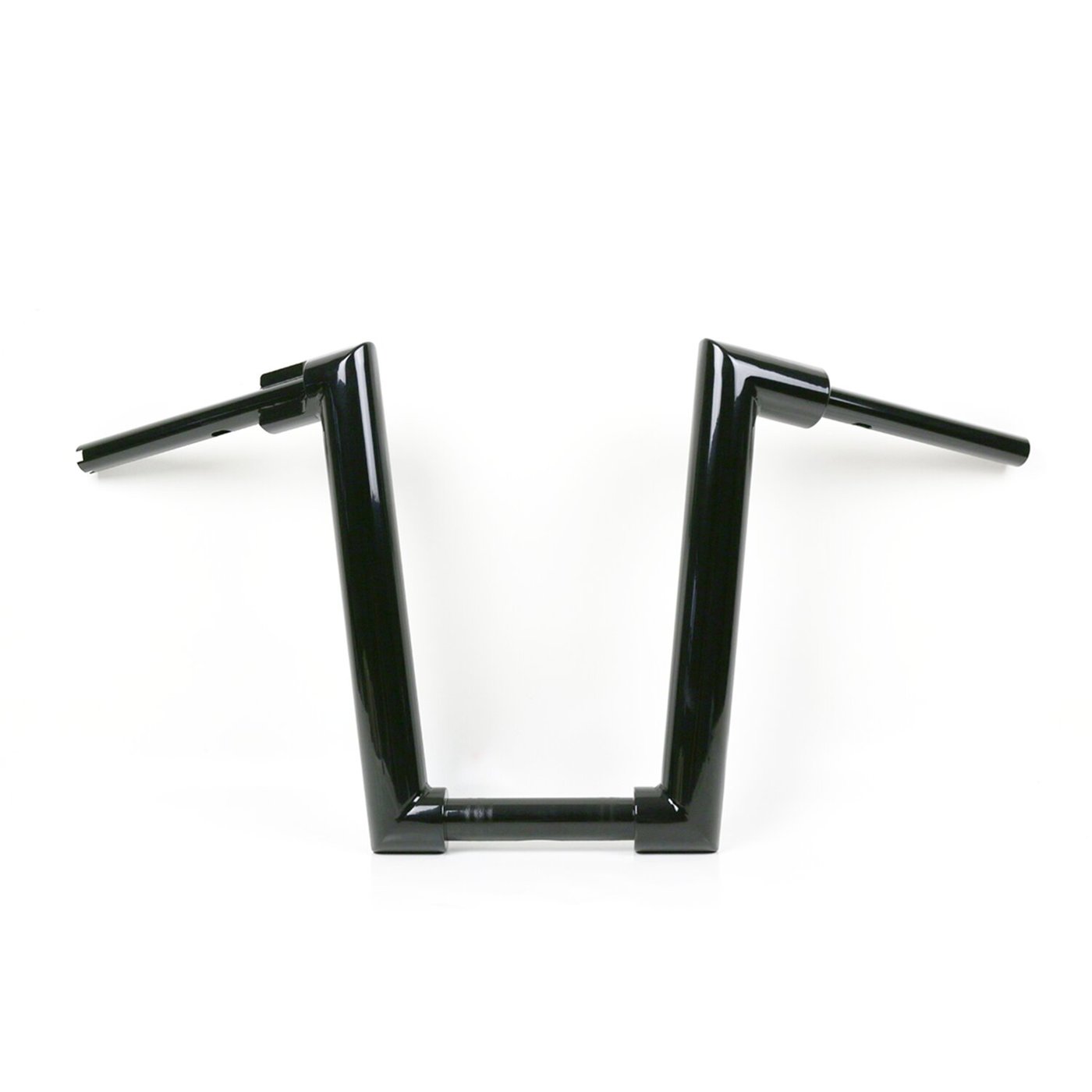 With approval. Gloss black powder coated Super Fat 2″ (51mm) diameter handlebar. – Tall. 38cm high x 81cm wide x 26cm lower width x 13cm pullback – 1-1/4″ (32mm) riser area – E-throttle – Okay for heated grips – Slotted for internal wiring – Wiring slot facing down Note: Check your local MCS dealer or the MCS sales department for exact type of approval and validity on bike model and years on the test report. Note: Original risers of some models are too wide and may not fit. 979860 Kodlin Big Block risers are advised for all H-D with 1-1/4″ (32mm) diameter at the risers, excl. M8 Breakout models for which 599573 Breakout lower risers are advised. When stock risers are a (too) tight fit do not install.
