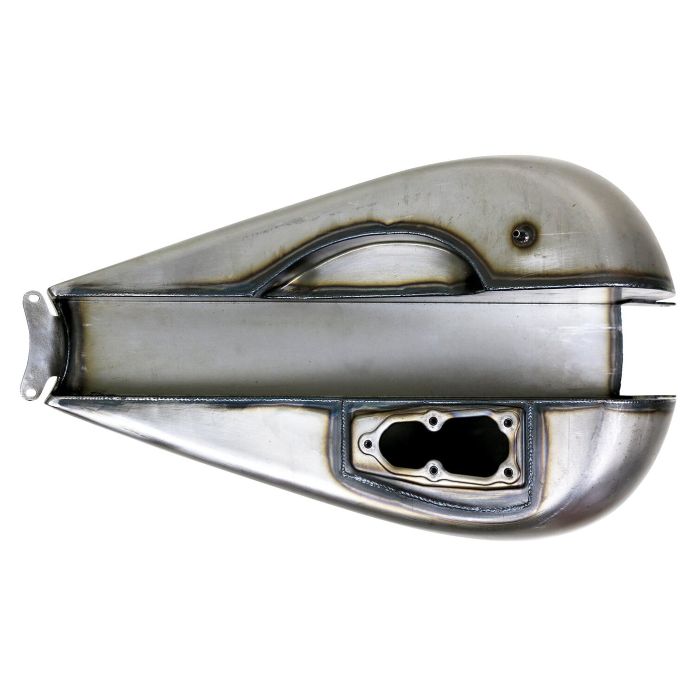 This 3.5 gallon (13 liter) fuel tank is called ‘Breakout’ but will actually fit all Softailframes. It transforms the bulky look of the stock tank to the typical flowing lines that made Fred Kodlin motorcycles iconic in the custom scene. Complete with pop-up type gas cap. The OEM fuel pump can be re-used. Note: Some Softail models may require dash, instrument relocation or seat modification. Note: Will not fit with stock seat. Note: It is advised to pressure test, seal and test fit all tanks before tanks are painted and installed. Some tanks are painted, but this coat is applied for rust prevention during storage only.