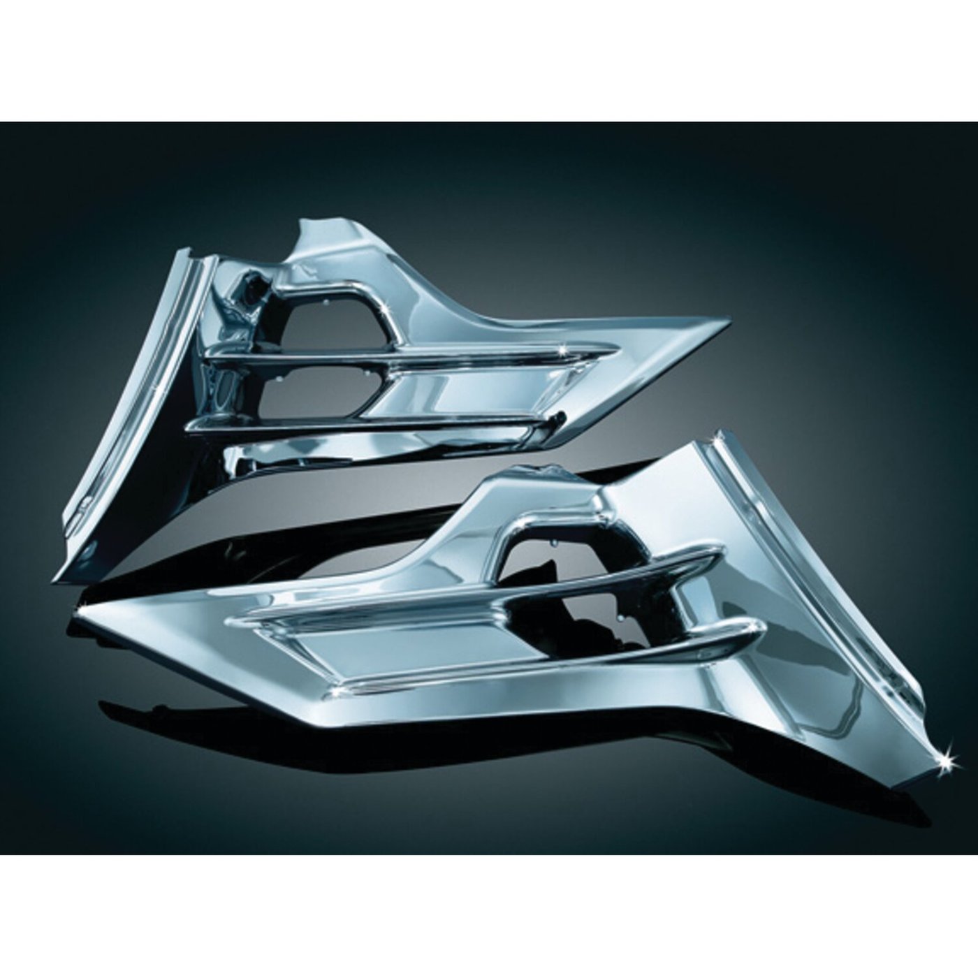 Dress up the mid section of your Gold Wing! These covers feature a lustrous chrome finish, cutting edge louvered styling, & even provisions for adding custom back-lighting. Covers this cool will stand out for their contemporary styling & distinctive good looks. Simply bolt in place and instantly add a sleek new look with a brilliant shine.