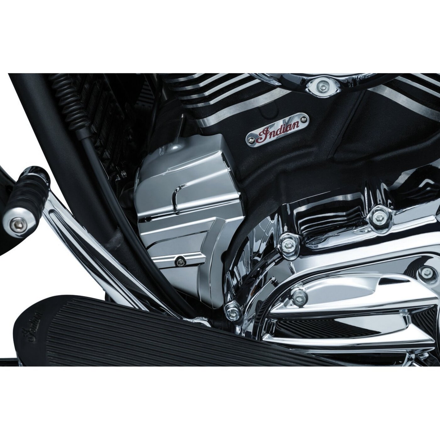 The Starter End Cover for Indian transforms the end of the starter area and front left motor mount by coordinating the design elements found on the outer primary to cover the dead space and additional wiring connections. Made from high-quality chrome-plated die cast aluminum, this piece will leave you wondering why it didn’t come stock from the factory.