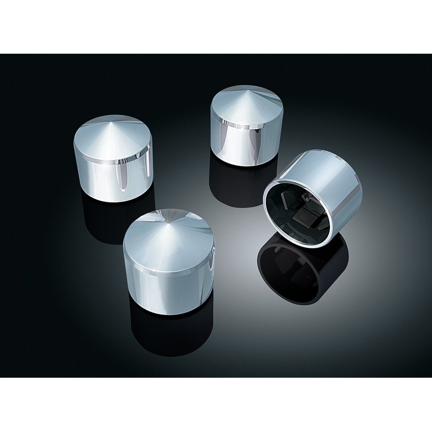4-pack in chrome plated billet aluminum. Push-on installtion, attaches with an internal spring clip.