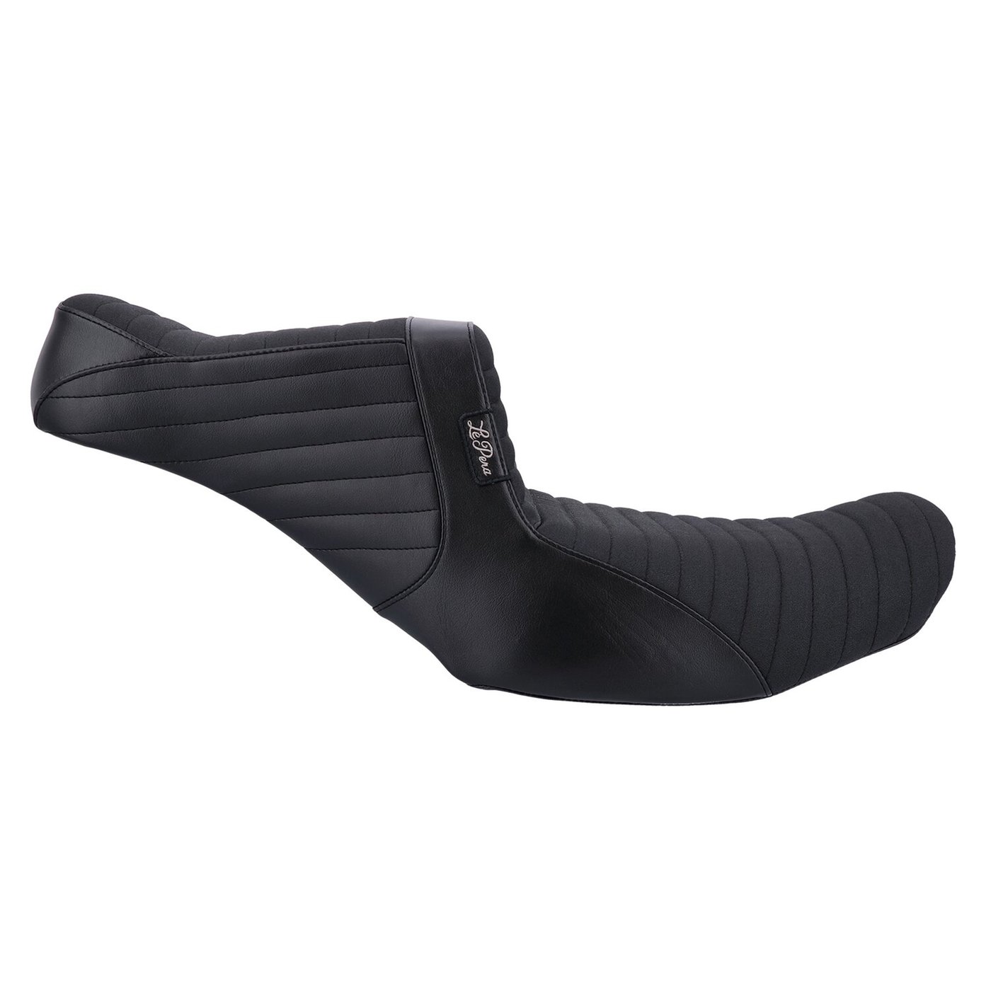 Gripp seating. Rider seat area 12.25″ wide, passenger seat area 7.75″ wide. Pleated stitch upholstery. Built with LePera’s Marathon Foam on a steel base plate for maximum stability and comfort. The whipped tail improves passenger lower back support. That, combined with the unrivaled high arching back support for the rider makes this a serious in contender when it comes to a mix of style and comfort. Note: This seat comes with Gripp Seating. A ‘Gripp Tape’ style upholstery used to help prevent you from sliding on the seat when torque and horsepower kick in. It provides additional grip but still allows you to reposition yourself on long trips.