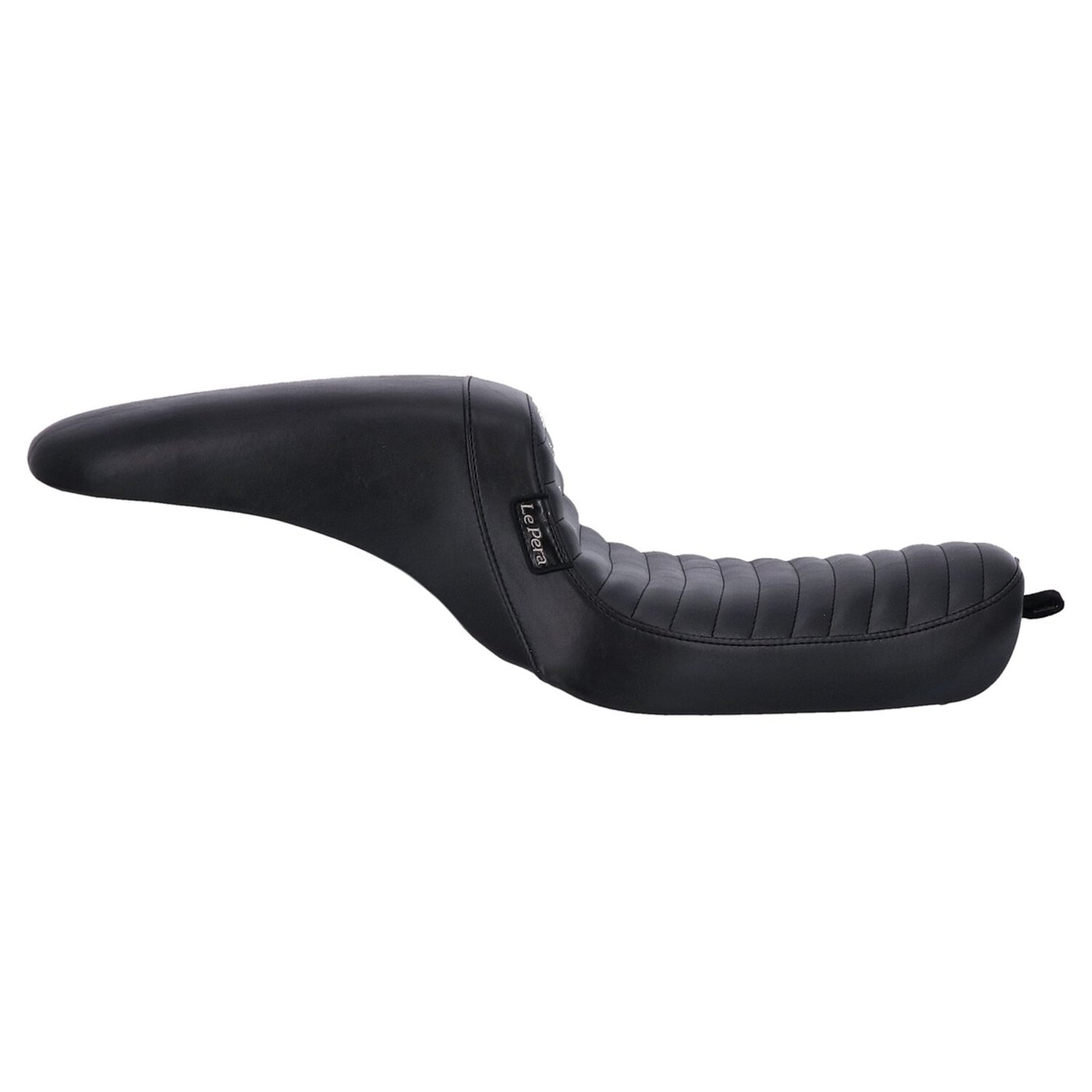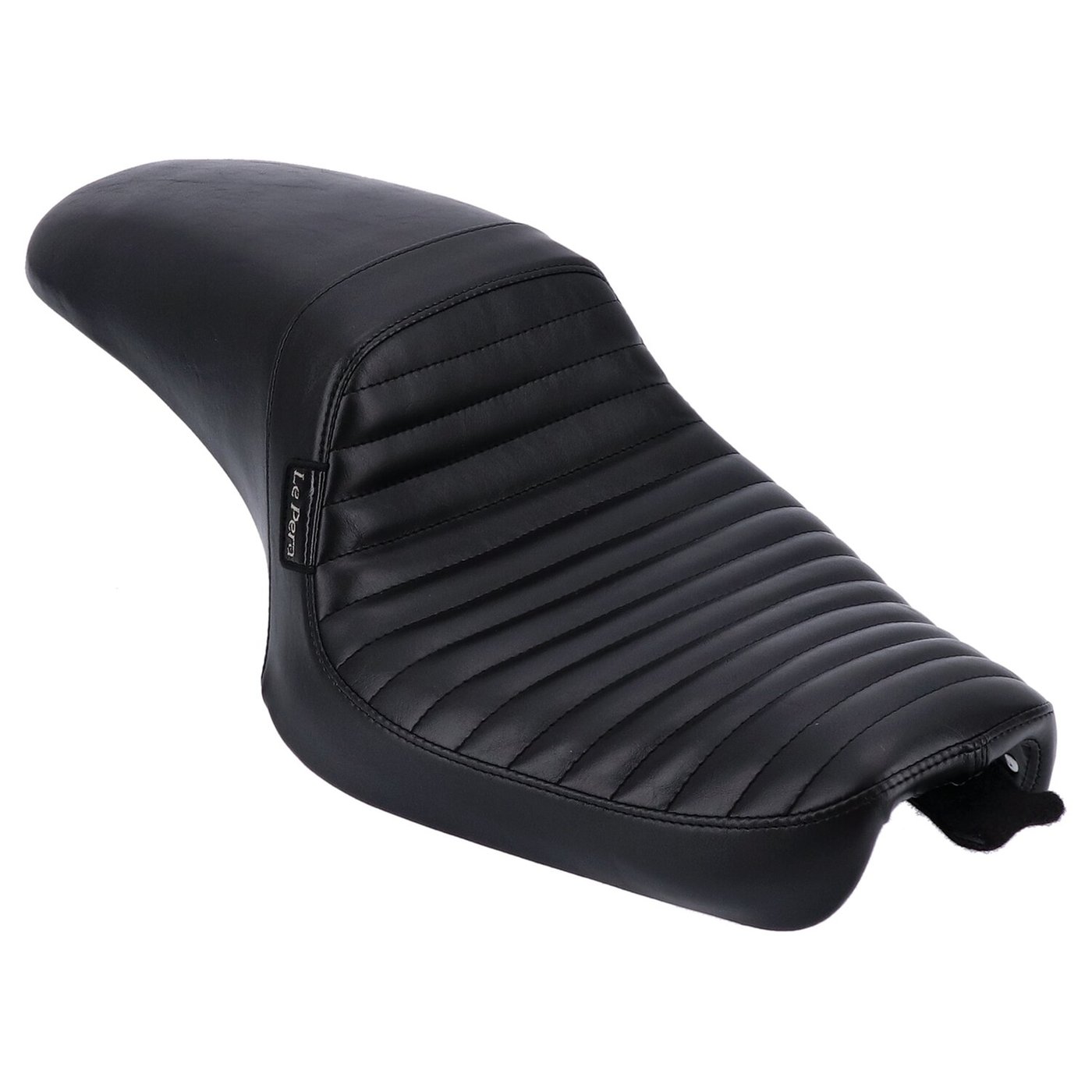 11″ wide. Pleated stitch upholstery. Solo version of the Daytona Sport. A mid-length solo seat. Built to provide a lower than stock profile for a deep, comfortable seating area with plenty of lower back support for all day cruising. Built to last with LePera’s ‘Marathon’ high density one-piece poured foam on a black powder coated 16 gauge steel base plate, which is carpeted on the bottom and edged with a metal reinforced vinyl protectant. The upholstery is double stitched premium Naugahyde vinyl. Note: A passenger seat is not available.