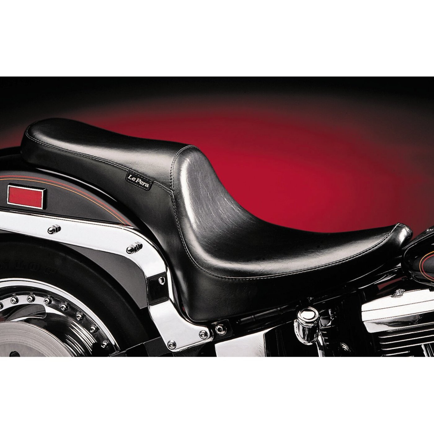 9.5″ rider & 5.5″ wide passenger seating width. All day cruising comfort. Heavily contoured rider section for more lower back support that will bring more Deluxe feeling the longer you ride. Built to last with LePera’s ‘Marathon’ high density one-piece poured foam on a black powder coated 16 gauge steel base plate, which is carpeted on the bottom and edged with a metal reinforced vinyl protectant. The upholstery is double stitched premium Naugahyde vinyl.